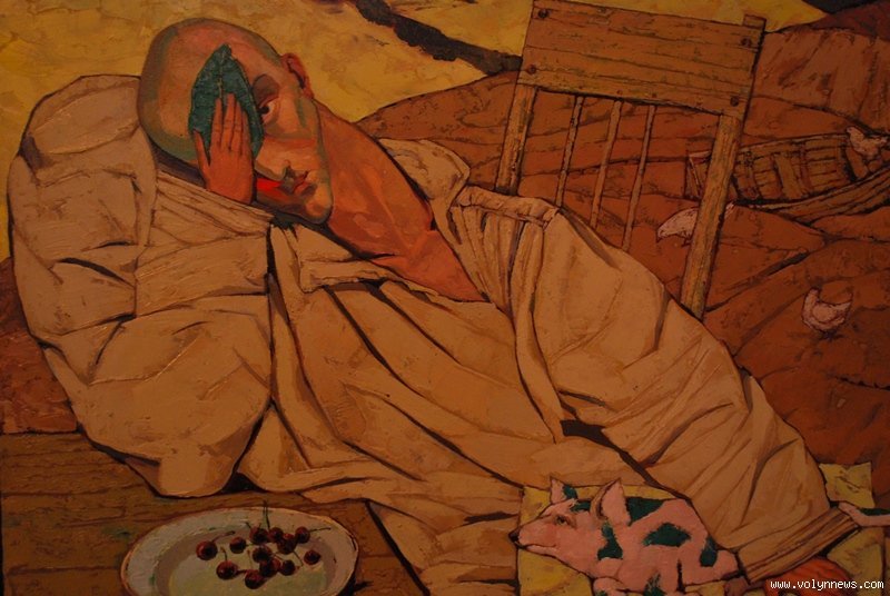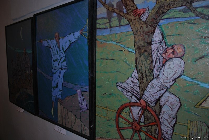 «Частину своїх робіт я залишив у тих містах, де проходили виставки. Тому сьогодні ще хочу представити вам серію картин «Оскома». Це знаєте, коли їси дуже довго зелене яблуко і оскома нападає. От і у мене стільки ідей назбиралося, що від них оскома», – пояснив назву художник.