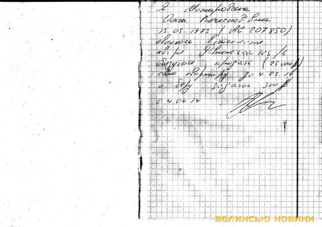 Постраждала надіслала також скан паспорта шахрайки (знаходиться в розпорядженні редакції) і скан розписки: