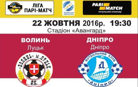 Гра 12 туру Ліги Парі-Матч між Волинню та Дніпром відбудеться у суботу 22 жовтня.