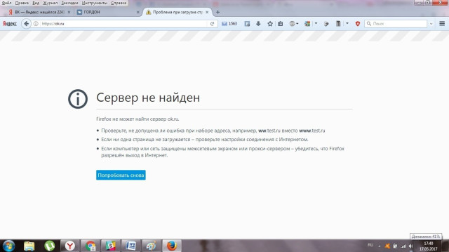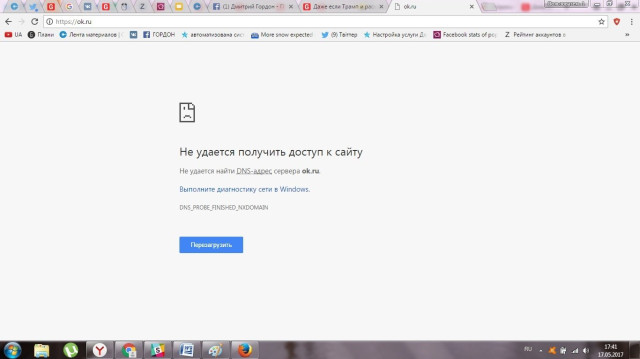 Сайт ok.ru не працює в браузерах Mozilla Firefox і Google Chrome.Також в цих браузерах не відкривається сайт vk.com.Сьогодні три українські оператори: "Київстар", "Лайфселл" і "Vodafone Україна" - почали блокування російських сайтів.