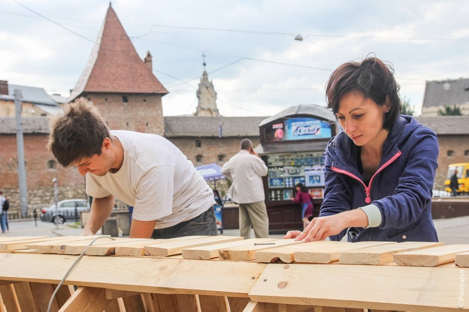 Меблі робили учасники акції, а саме: Богдан Прохасько, Павло Петрич та Роман Вербіщук.