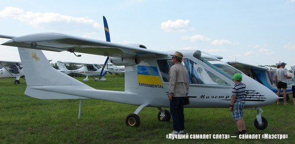 Літак "Маестро" власної конструкції Луцького Аероклубу "Крила Волині" на 10-му ювілейному злеті легкої авіації ім. С. П. Корольова на летовищі цивільного аеропорту м. Житомир.