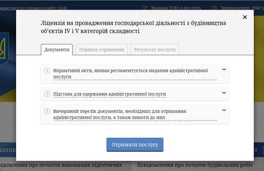 З 6 липня подача документів для отримання ліцензії на провадження господарської діяльності з будівництва об’єктів IV і V категорій складності та внесення змін до переліку видів робіт провадження господарської діяльності з будівництва об’єктів IV і V доступна в електронній формі. Послуга доступна у будь-який зручний час 24 години 7 днів на тиждень через мережу Інтернет — електронну систему e-dabi.gov.ua або єдиний державний портал адмінпослуг poslugy.gov.ua.