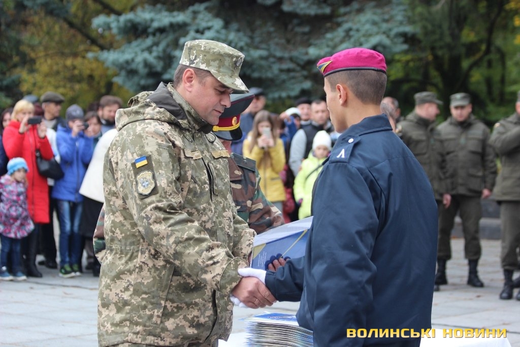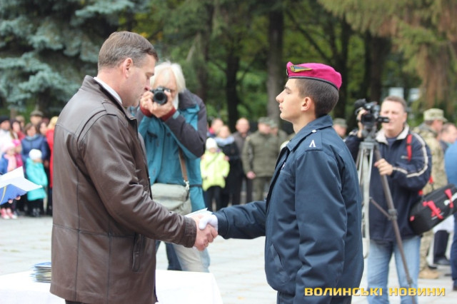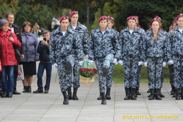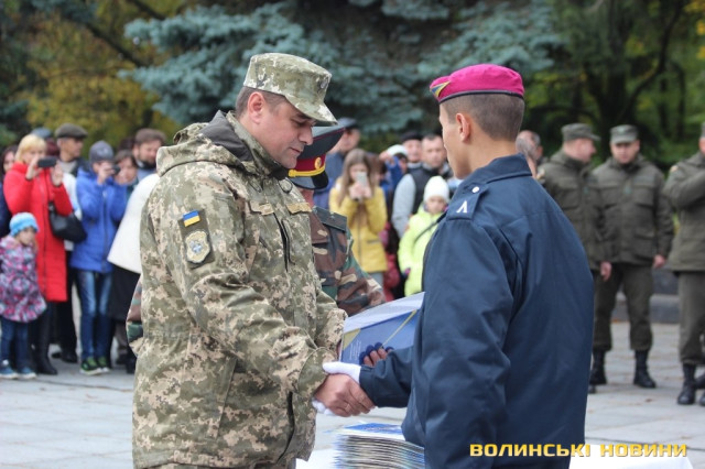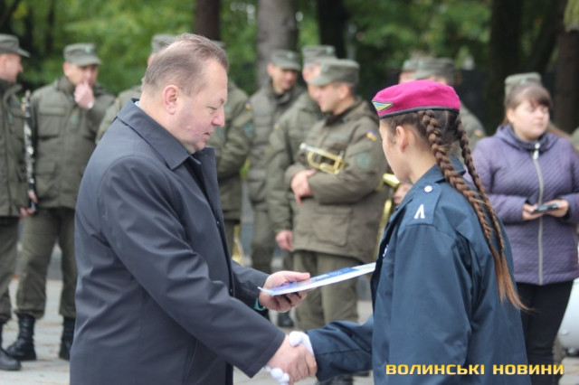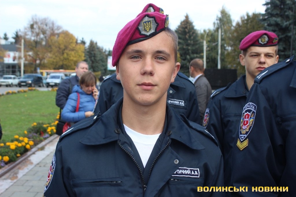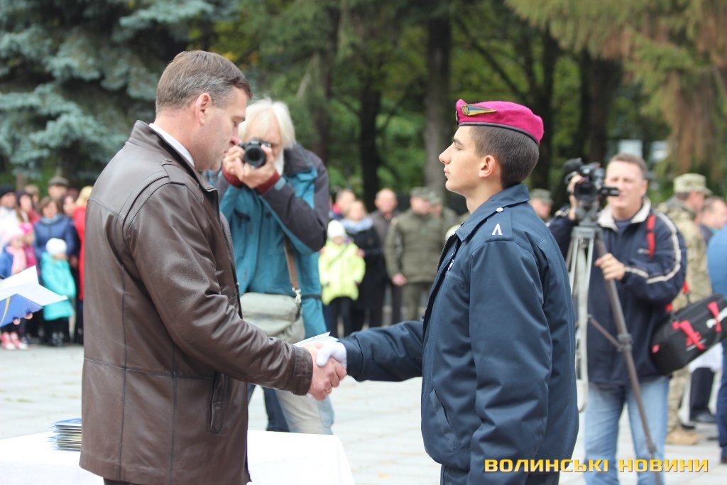 «Мені подобається стройова підготовка, форма та рівень знань, які тут дають. Я планую бути юристом, як і мій батько, а в школі недостатні знання дають для цього. Саме тому я зупинив вибір на ліцеї», - пояснює Дмитро.Урочистості розпочали з Гімну України та хвилини мовчання, а далі до пам’ятних знаків поклали квіти, аби віддати шану тим, хто віддав свої життя за Батьківщину.Привітати новобранців з таким важливим кроком у їхньому житті прийшов виконувач повноважень Луцького міського голови Григорій Пустовіт.