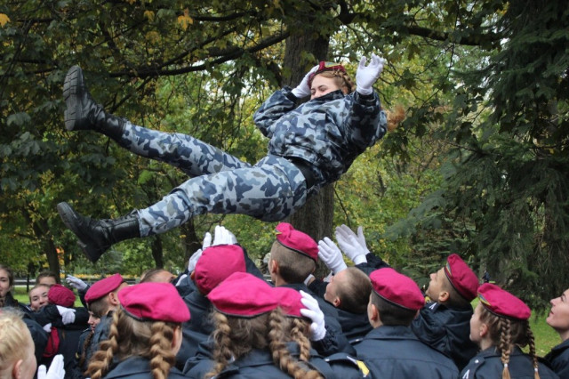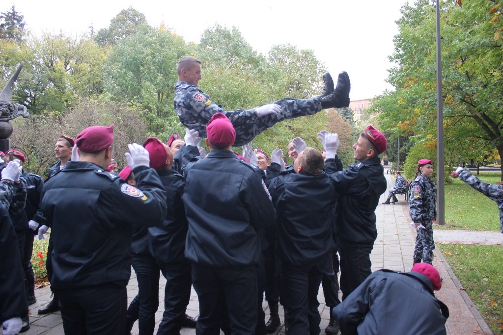 «10 років тому на цьому історичному місці я теж приймала присягу. І ця подія стала для мене визначальним поворотом у житті. Адже колектив навчального закладу дав мені не лише хороші знання, а й сформував моральні якості, навчив витримки та сміливості. Сьогодні «захисник Вітчизни» звучить по-особливому, тому ви маєте нести це у своєму серці. Будьте для інших прикладом та гордістю для близьких», - побажала пані Світлана.Опісля усіх привітань ліцеїсти урочисто прийняли присягу.Після святкового дійства емоцій не стримували, а першачки, дякуючи другокурсниками за настанови, – підкидали їх.