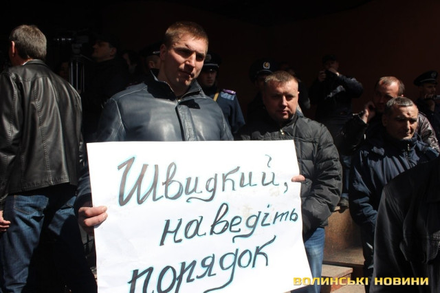 Зауважимо, що перед початком пікету обласного УМВС України, зібралися колишні міліціонери, які прийшли захищати Швидкого. Серед них було чимало таких, які відмовлялися коментувати, хто вони й чому прийшли під стіни управління.
