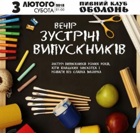 У луцькому пивному клубі «Оболонь» організовують вечір зустрічі випускників, який відбудеться 3 лютого. Захід стартує о 21.00 годині