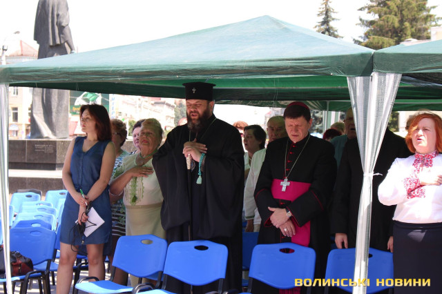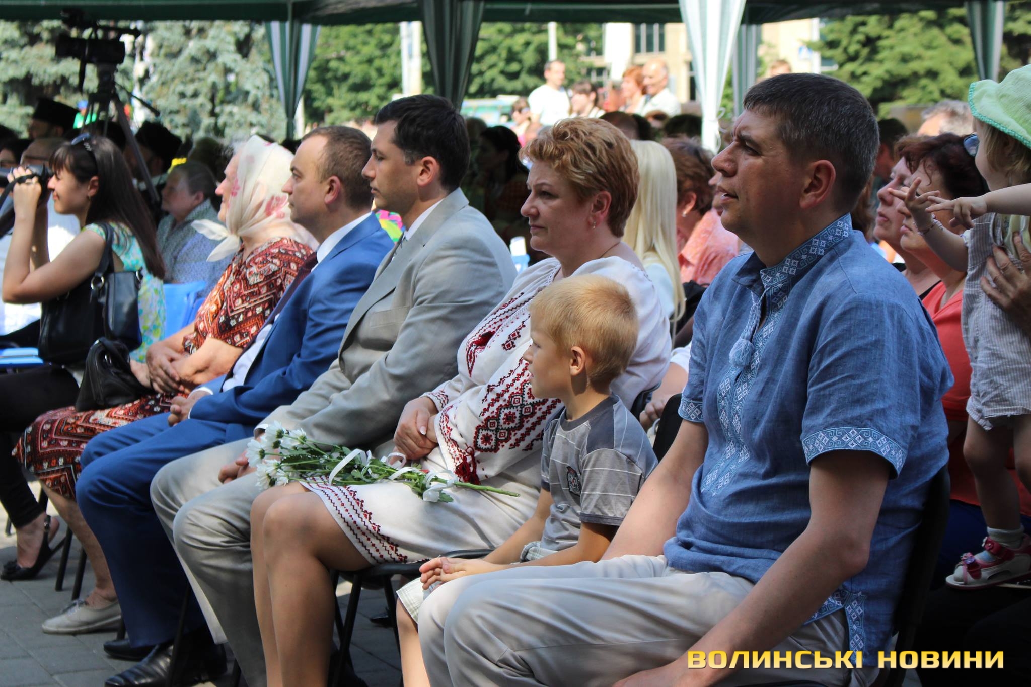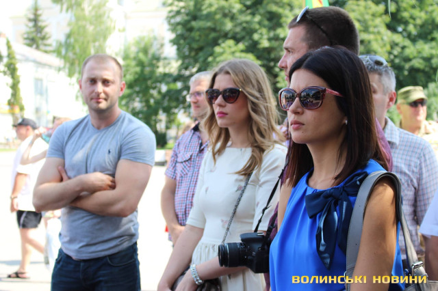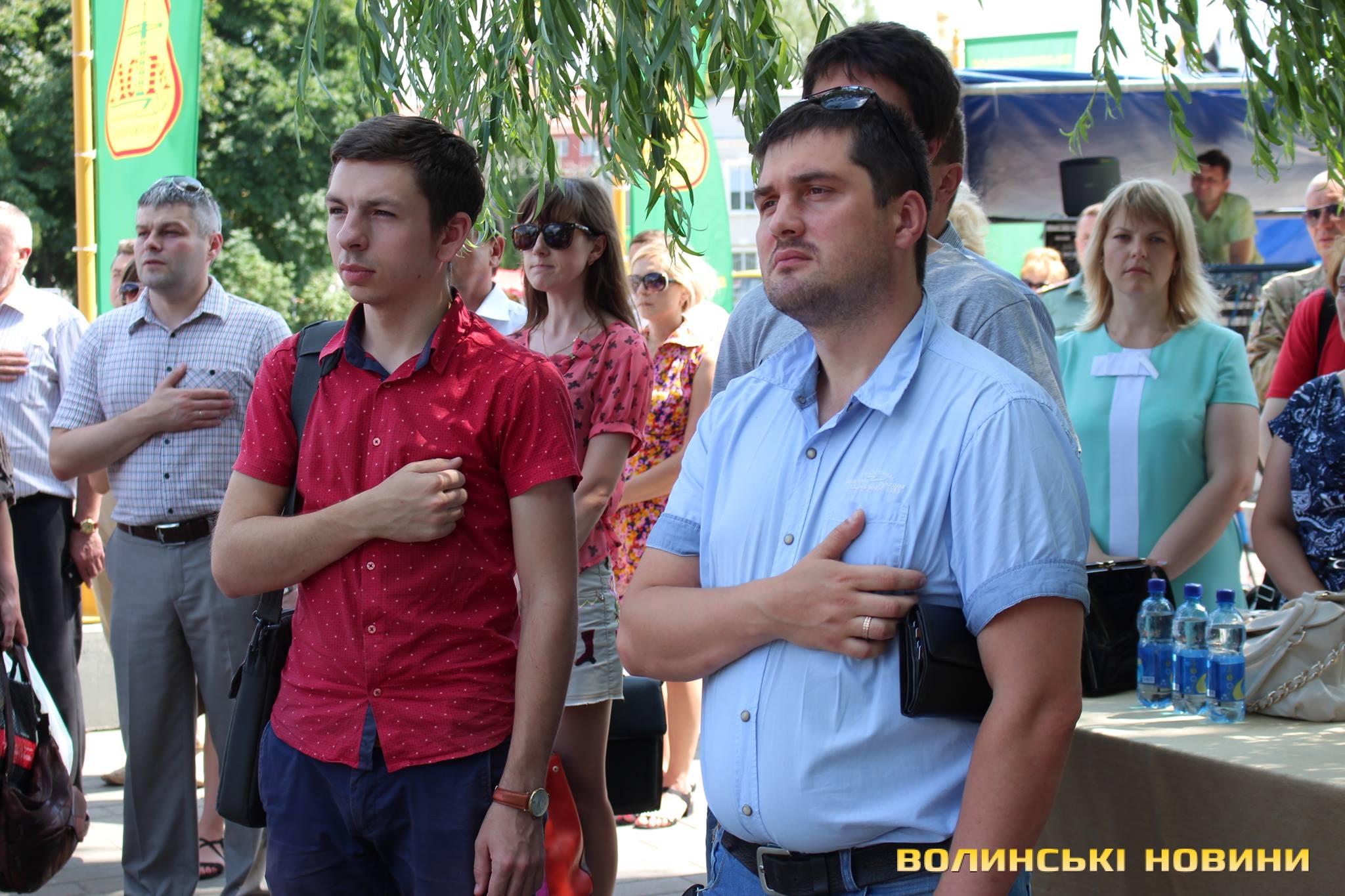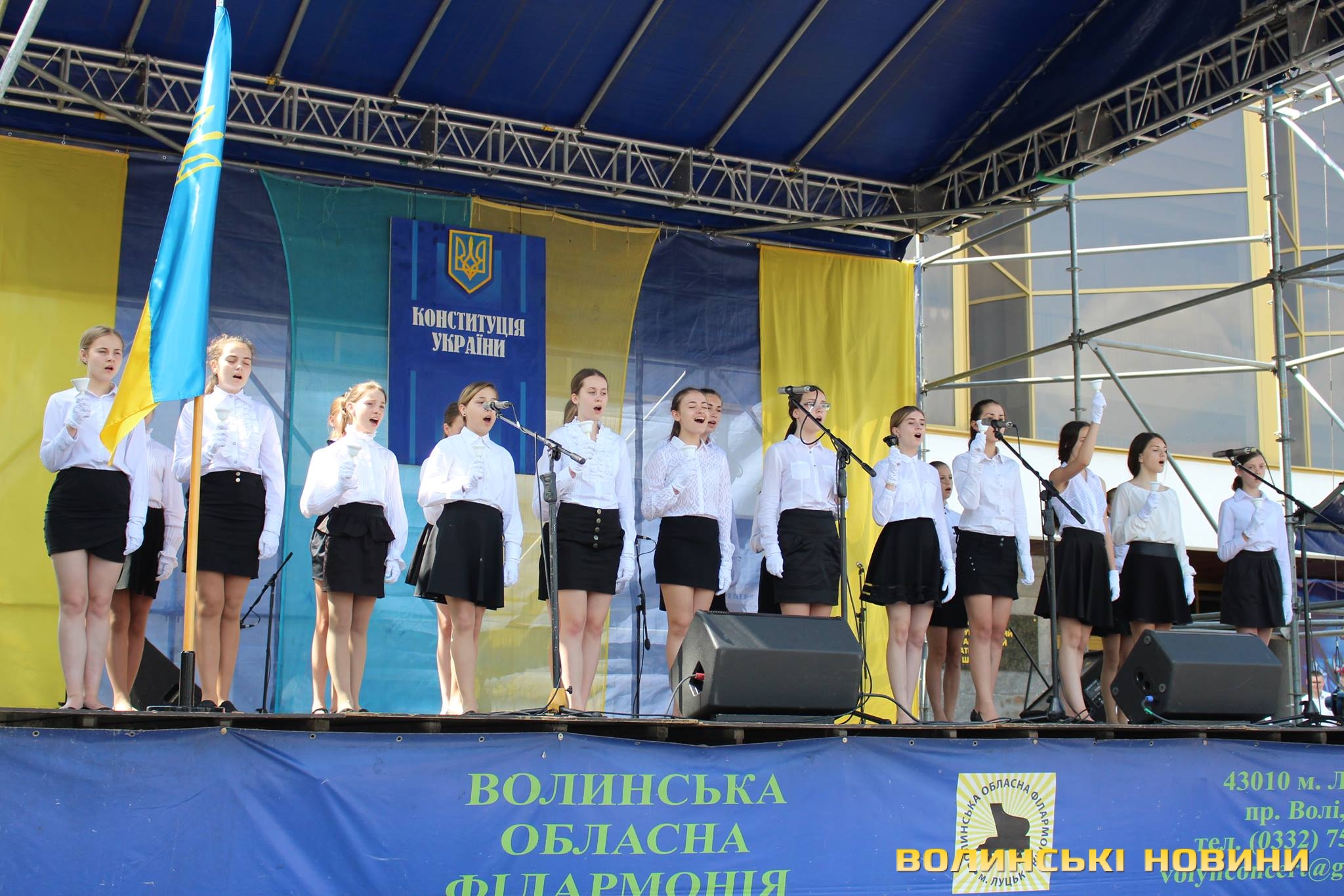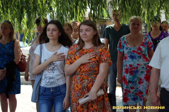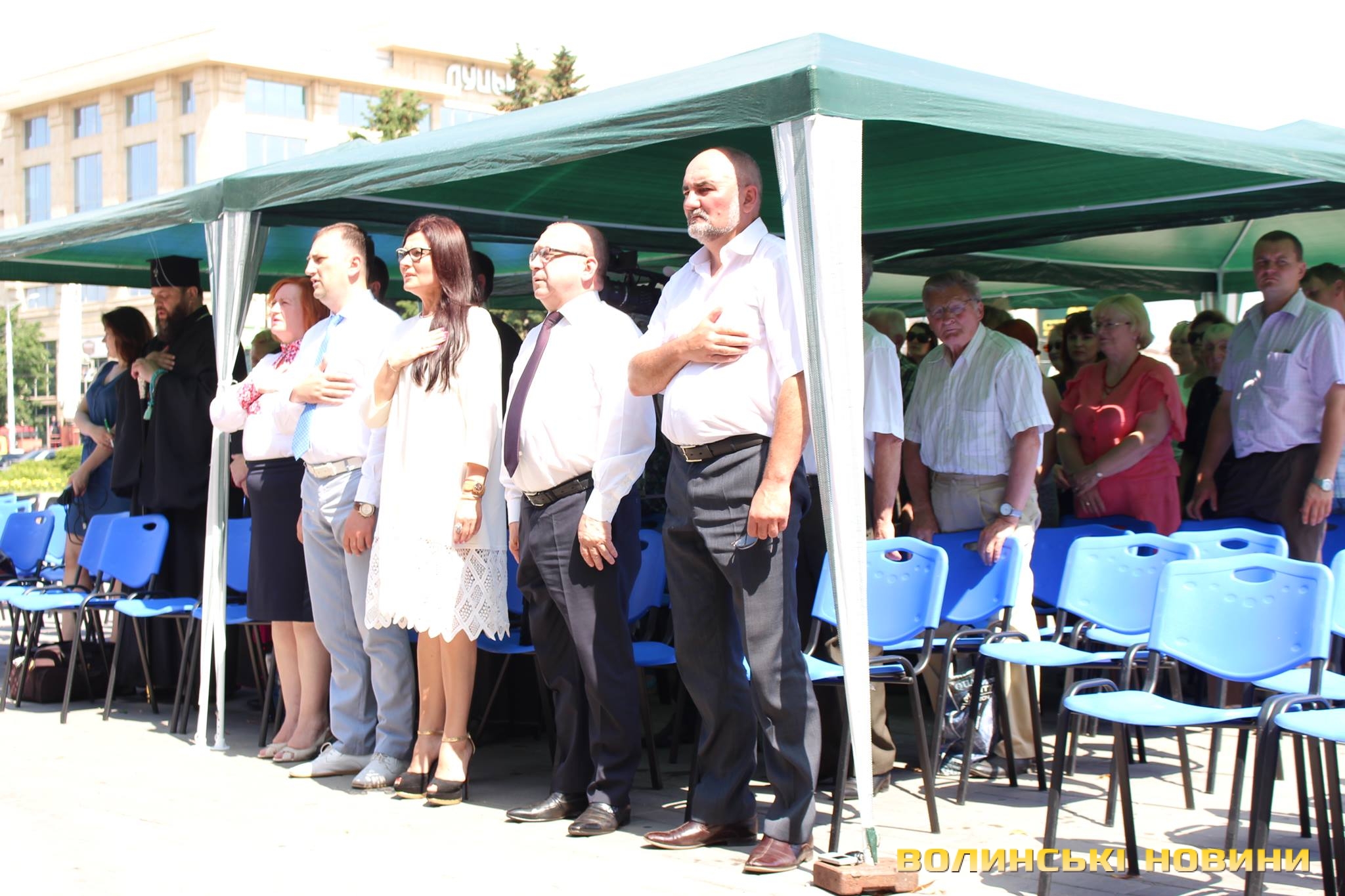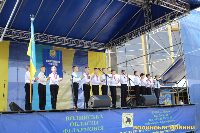 Представники обласної та міської громад зібрались на Театральному майдані, щоб привітати лучан з Днем Конституції України.
