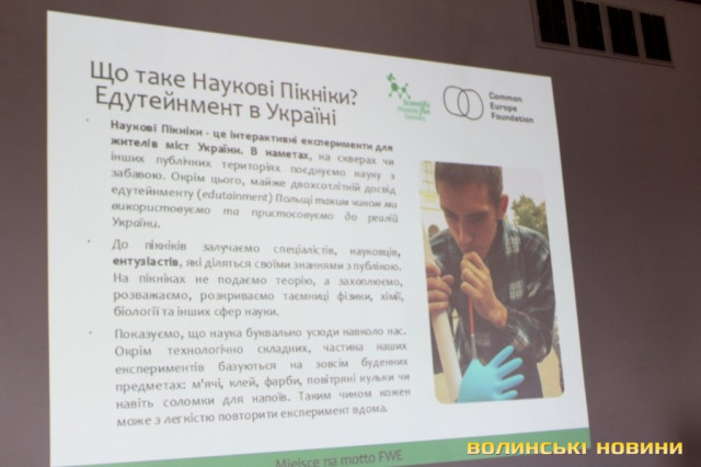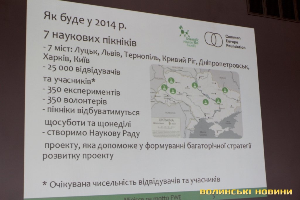Як розповів Президент Волинського Інституту Підтримки та розвитку Громадських Ініціатив Петро Лавренюк, науковий пікнік – захід, який передбачає проведення експериментів на вулиці із демонстрацією для дітей. Цього року Луцьк вперше долучається до наукових пікніків в Україні, у заході візьмуть участь 18 організацій, серед яких представники факультетів СНУ імені Лесі Українки та ЛНТУ, центру науково-технічної творчості учнівської молоді, творча майстерня «Розмальовка піском», художня студія «Вулик», Палац учнівської молоді, центр розумового та естетичного розвитку Сімейна академія «Плай», коледж технологій, бізнесу та права СНУ, Волинський обласний центр зайнятості, Мала Академія наук, служба порятунку «101», розважальний центр «Адреналін Сіті» та Луцький базовий медичний коледж. Як пояснив Петро Лавренюк, у рамках заходу поєднають науку із забавою, переслідуючи мету відволікти дітей від тривожних подій та зацікавити практичною наукою. Для цього залучили спеціалістів із різних галузей: фізики, біології, медицини, хімії, психології, мистецтва тощо.