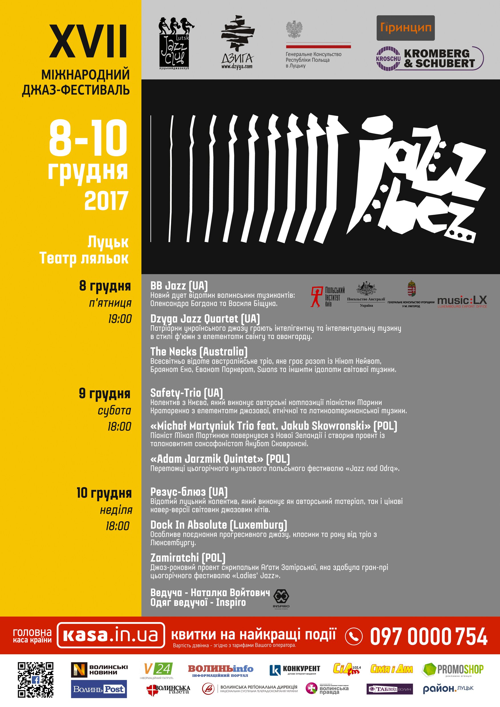 З 8 по 10 грудня 2017 року відбудеться одна із найбільших музичних подій України і Польщі – XVІІ міжнародний джазовий фестиваль «Jazz Bez» в Луцьку.