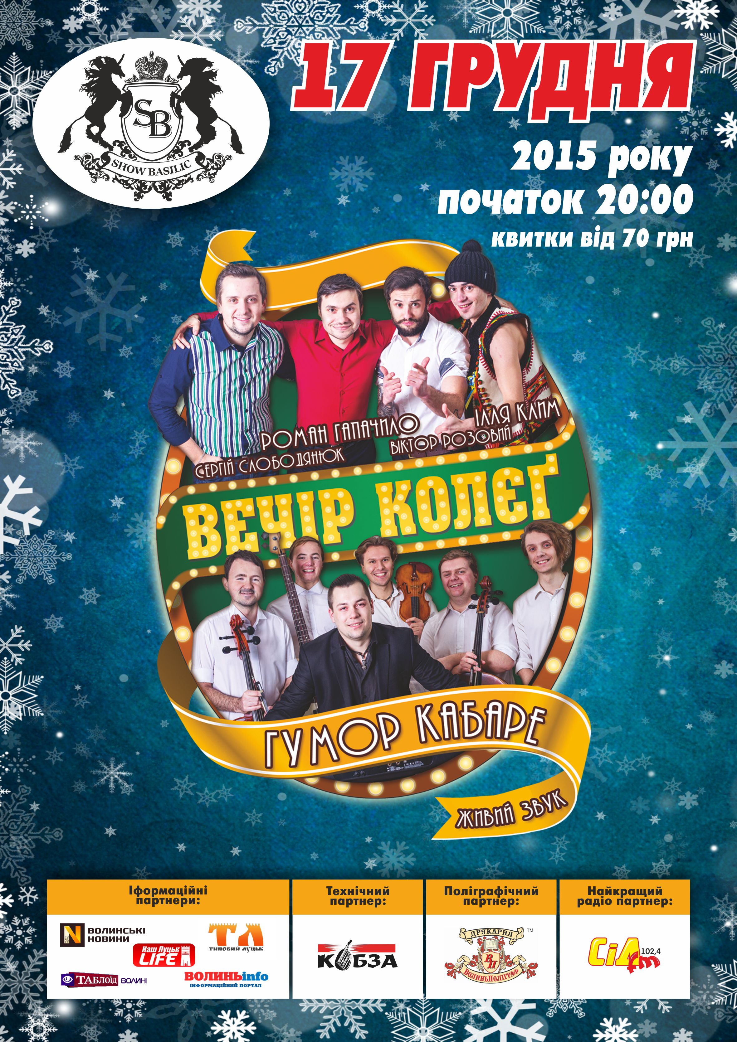 Концерт гумор кабаре "Вечір колєґ" відбудеться у Луцьку в клубі «Show Basilic».