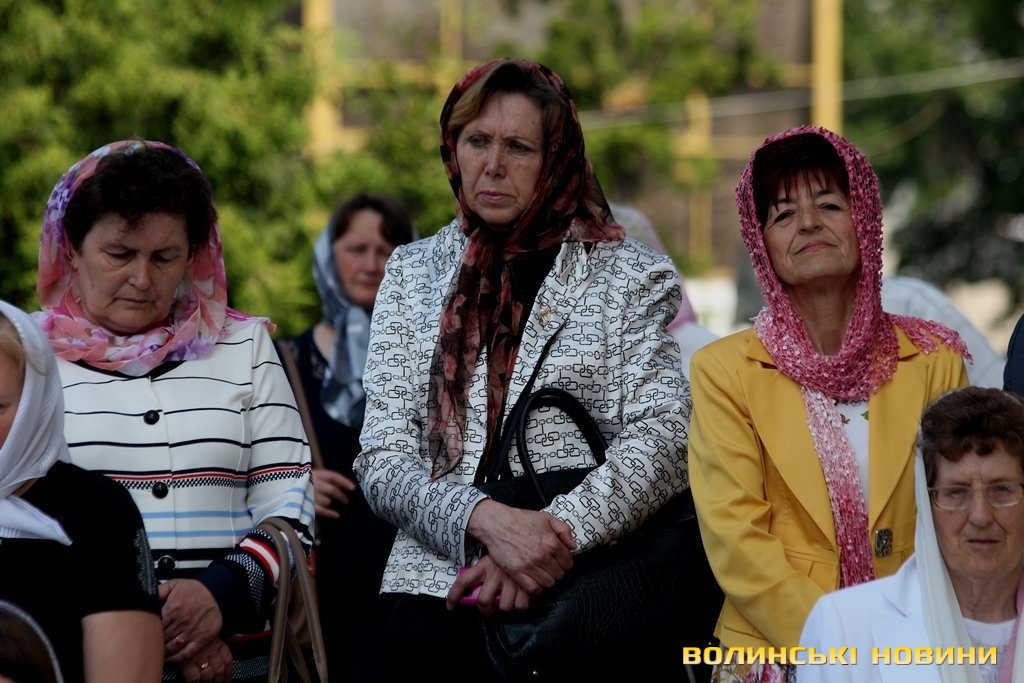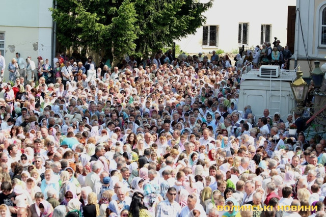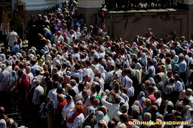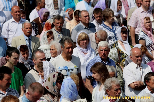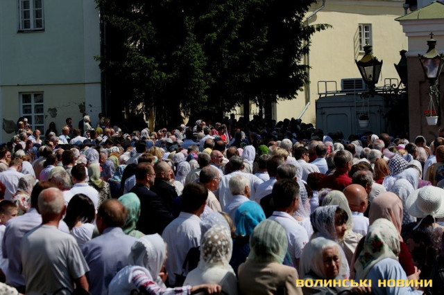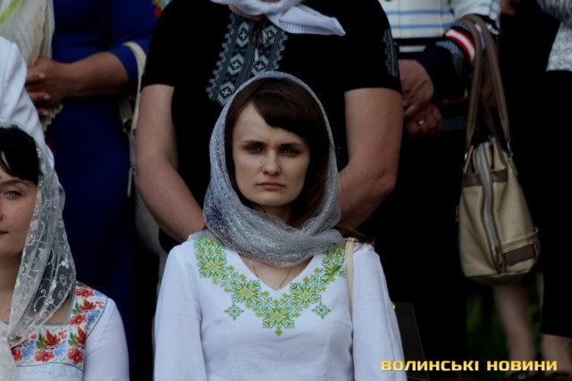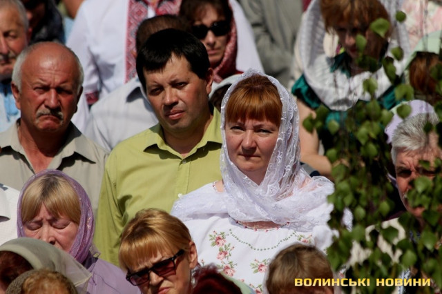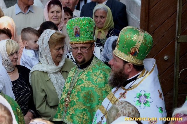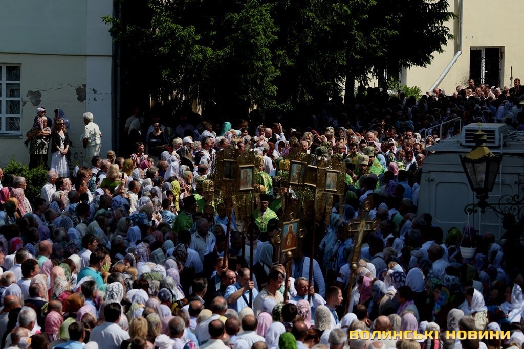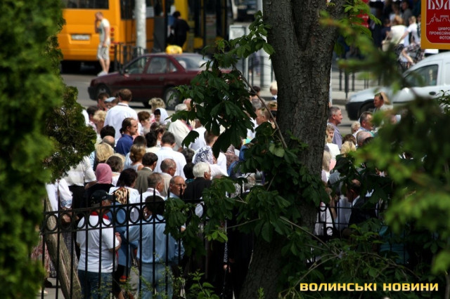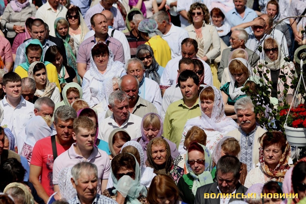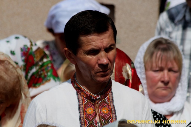 Потому всі рушили хресною ходою навколо храму. В перших рядах за патріархом йшли волинські владці – голова ОДА Володимир Гунчик, голова облради Валентин Вітер, Луцький міський голова Микола Романюк. Вони стояли поруч з патріархом і на сходах наприкінці богослужіння.