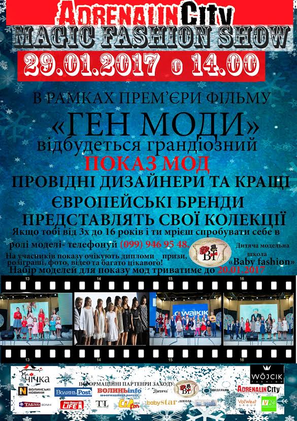 Контакти організаторів – дитяча модельна школа Baby fashion: 099 946 95 48.Як повідомляло Інформаційне агентство Волинські Новини, «що таке мода», «звідки вона взялась» та куди йде – відповісти на ці запитання спробували маленькі талановиті лучани, які знялися в короткометражній художній картині "Fashion gene" ("Ген моди").