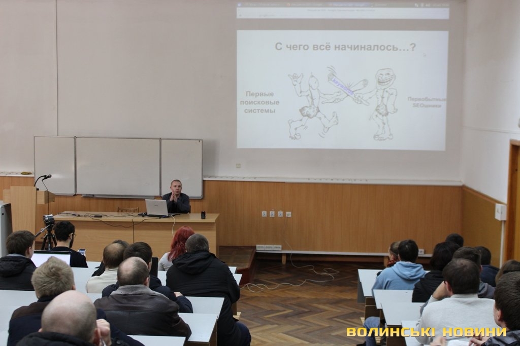 Лучан, зацікавлених в IT, зібрали вчора, 2 квітня, в одній із аудиторій СНУ імені Лесі Українки на лекцію «SEO-оптимізація». Спікер, SEO-спеціаліст InternetDevels із чотирьохрічним стажем Олег Шихалов, або як він сам себе називає Олег Seoshkin, дав рекомендації, як правильно просувати свій сайт, щоб він опинився у топі пошукових систем, а також розповів, що таке семантичне ядро, мета-теги, та як їх використовувати.