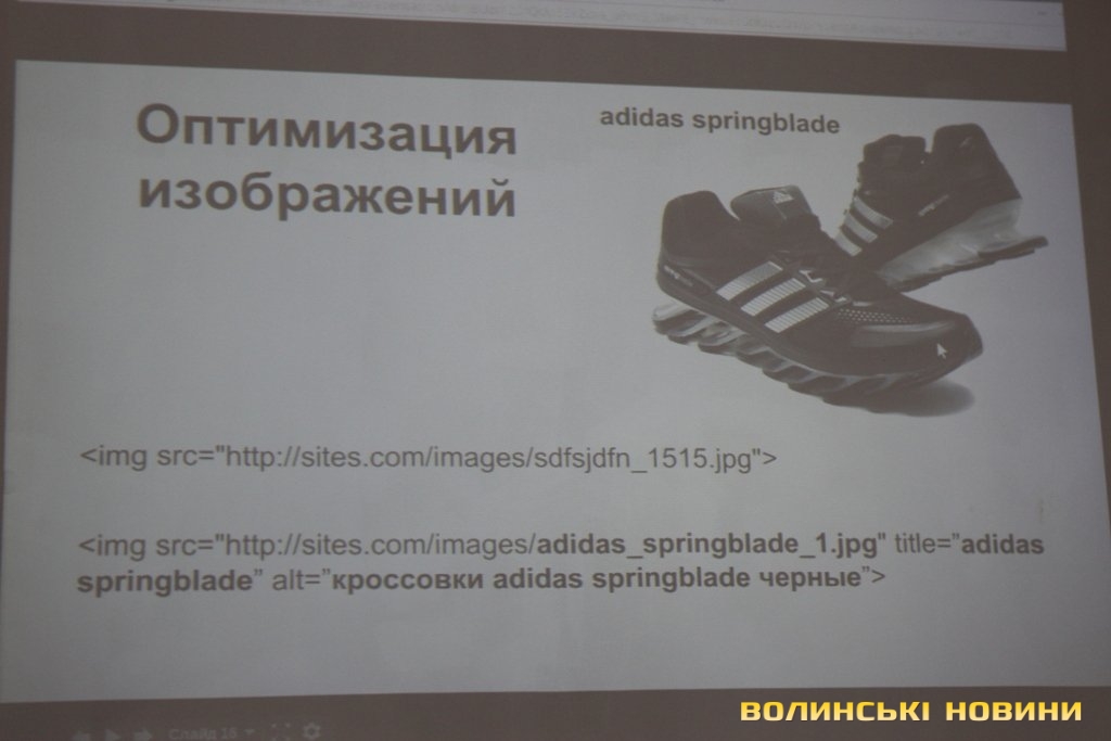 Ще одна штука, над якою варто працювати – це «імена» ваших зображень, які ви додаєте на сайт. Справа у тому, що часто юзери шукають щось саме за картинками. І ці ж картинки, якщо тільки їхні назви будуть правильно прописані, зможуть вивести користувача саме на ваш ресурс. «Тому важливо, – наголосив Олег, – називати їх словами, які описують безпосередньо те, що на них зображено. Так, фото з кросівками «Reebok easy tone» варто назвати щось на кшталт «Reebok-easy-tone-krosivky».