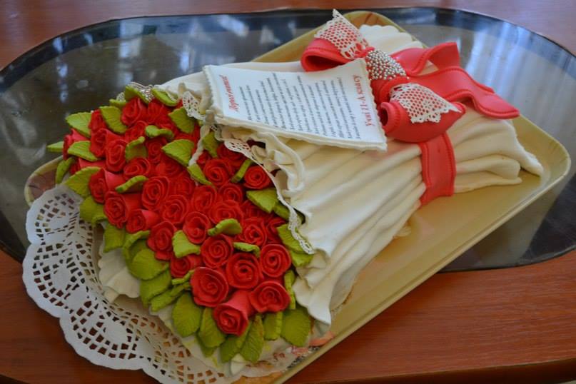 «Сюжети для оформлення солодких виробів придумую сама. Іноді люди замовляють і кажуть, що хочуть бачити на тортику: героїв дитячих мультфільмів, автомобілі, книги, квіти, фігурки людей – багато чого. Просто замовник каже про свої побажання, а я вже домислюю і втілюю це в реальність за допомогою мастики, цукрової пудри та інших кондитерських засобів. Наприклад, до Дня вчителя спекла великого торта з букетом квітів на ньому. Педагоги були надзвичайно задоволені. Якось довелося мужчині на ювілей робити торт з українською хатою. Виготовляю торти у формі книг – як історію життя людини, іноді роблю зі скриньками та дитячі на різну тематику. Якось на випускний вечір у школу готувала торт із випускним альбомом на ньому (з фотографіями), а для спортсмена – зі штангою (їстівною, звичайно)», – розповіла Ольга.