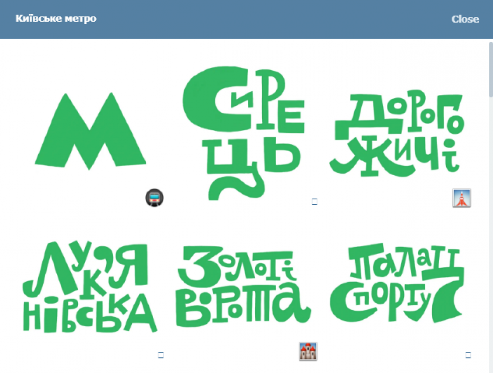 «Та-да-м! Нарешті це сталося — намалювала леттерінг для телеграмних стікерів київського метро. Стікерпак ще буде доповнюватися», – написала луцька дизайнерка, яка зараз працює в Києві.