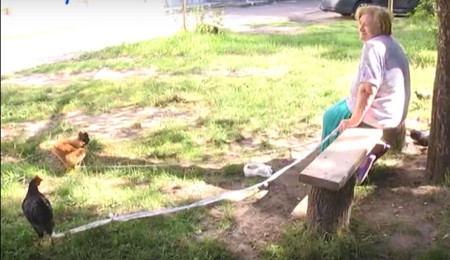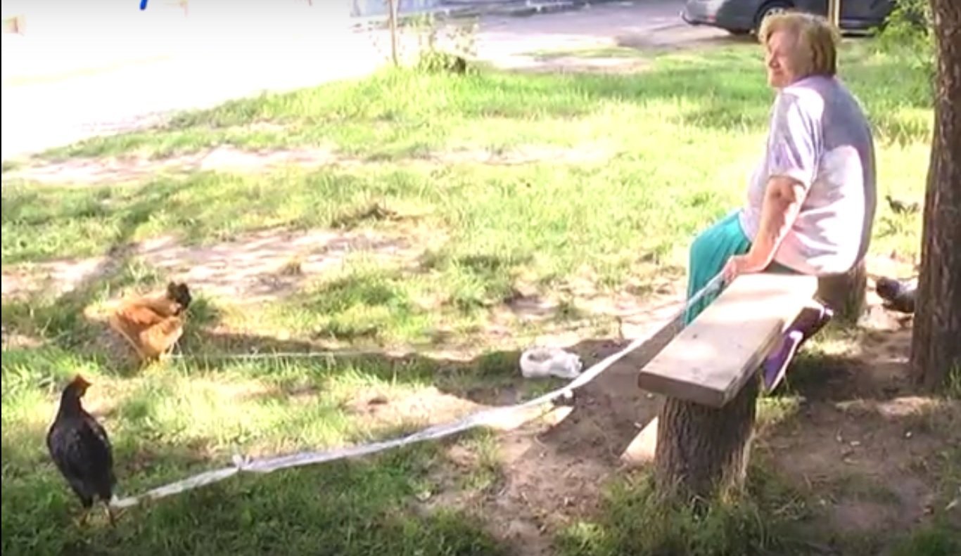 Як розповідає старенька, вона вже вдруге вдома заводить домашню птицю. Попереднього разу її курку з’їв сусідський собака. Тож тепер пернатих намагається далеко від себе не відпускати.