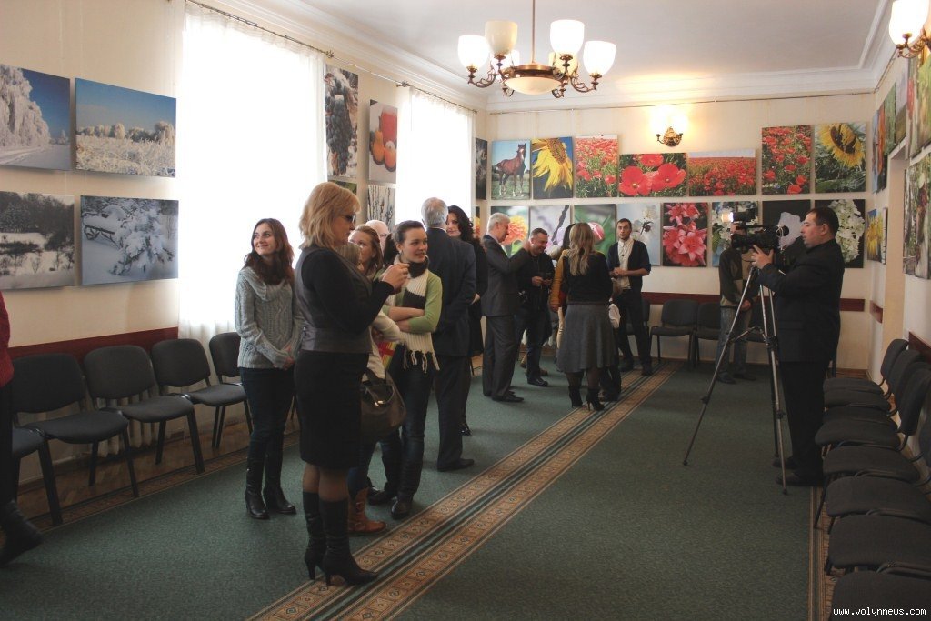«Взялися вчора цілий день зранку до вечора розміщувати картини, фотороботи. Їх є тут рівно сто разом з титульною сторінкою. Фото на полотні – я думаю, що на Волині ніхто такої виставки не робив», − розповів директор Будинку культури Луцька Юрій Войнаровський.