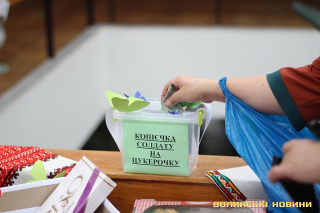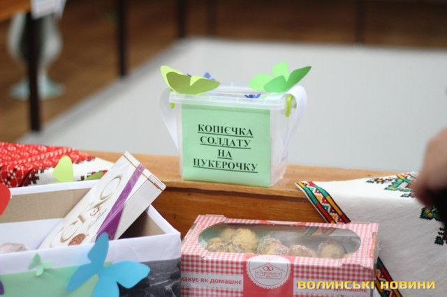 Окрім, власне, привітань та листів, лучанки збирали від всіх небайдужих солодкі та смаколики. Гості акції не лише жертвували кошти на покупку солодощів солдатам, але й приносили власні. У кошику можна було знайти домашнє варення різних видів, печиво та цукерки.Всі листи, разом з фотокартками та малюнками, а також солодощами активістки передадуть на Схід чоловікам, які боронять Україну від загарбників.