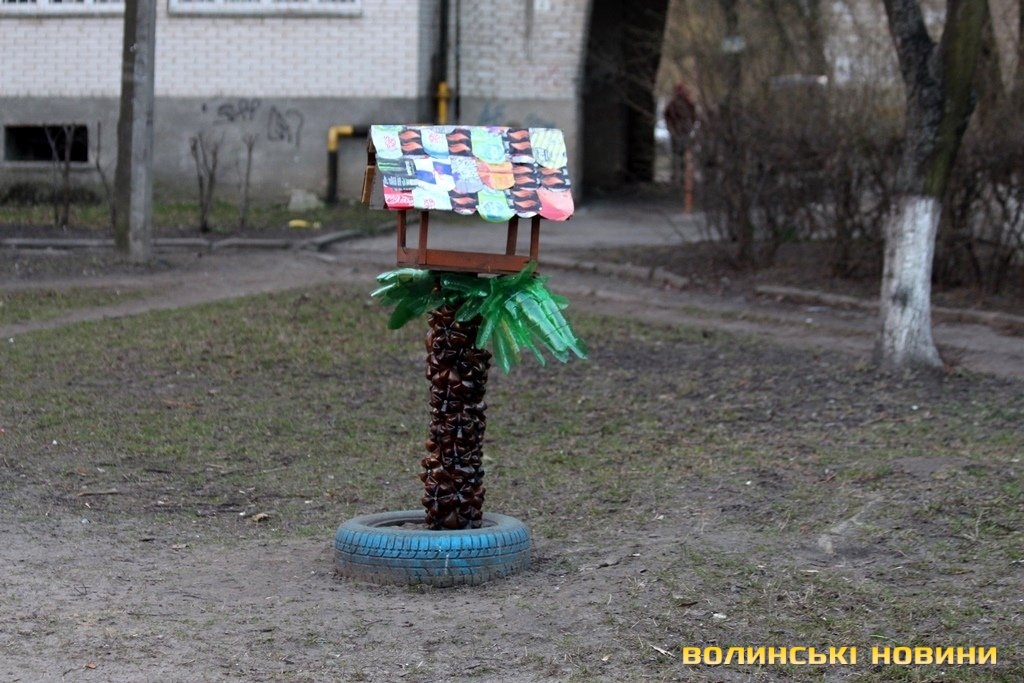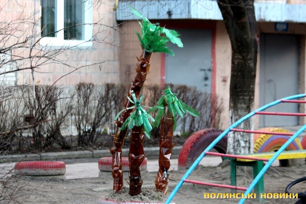 Креативність мешканців проспекту Молоді у Луцьку дозволила з користю використати непотрібні використані пластикові пляшки. Із ПЕТ-відходів, на прибудинковій території, містяни зробили «гавайський рай».
