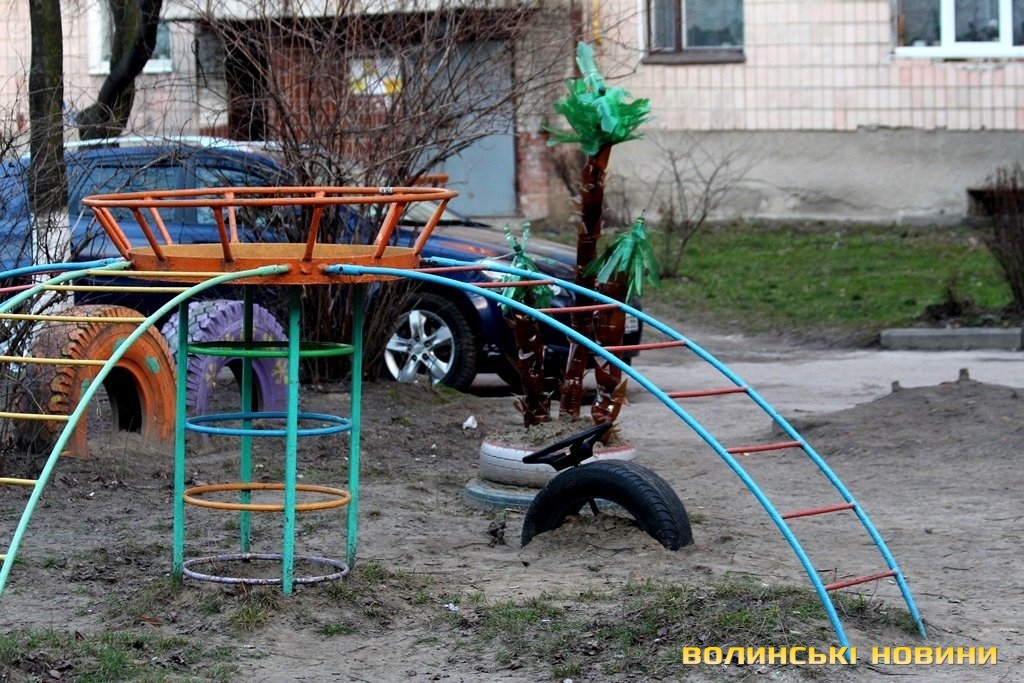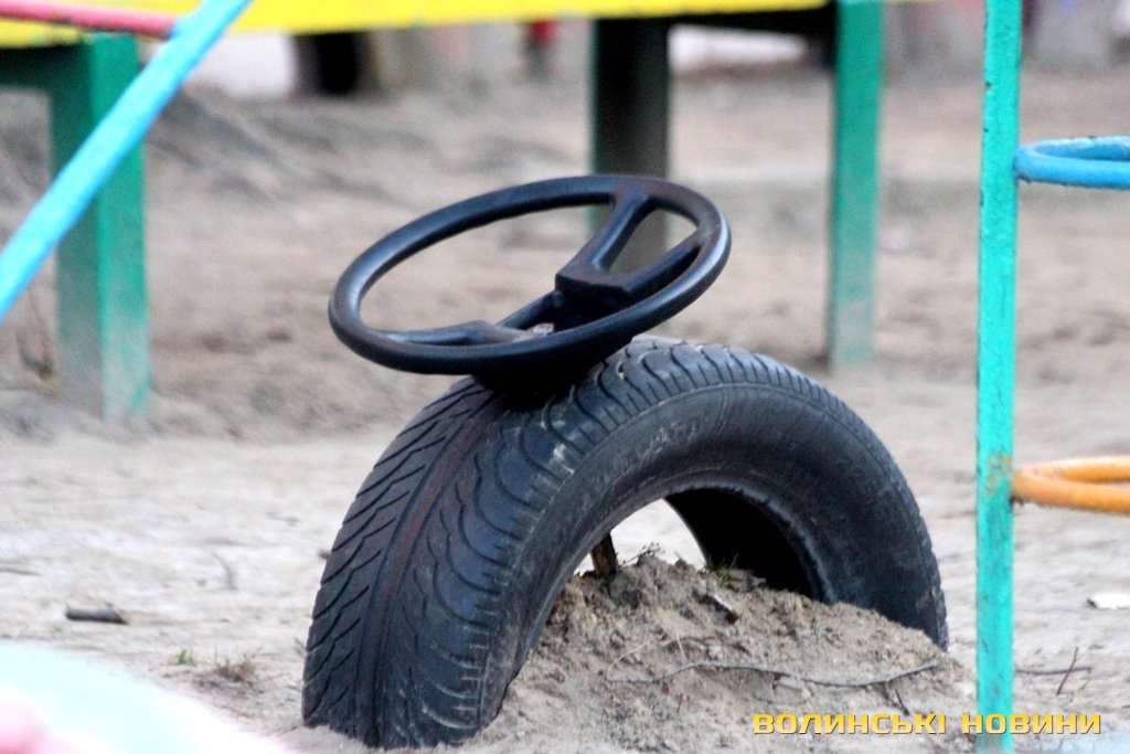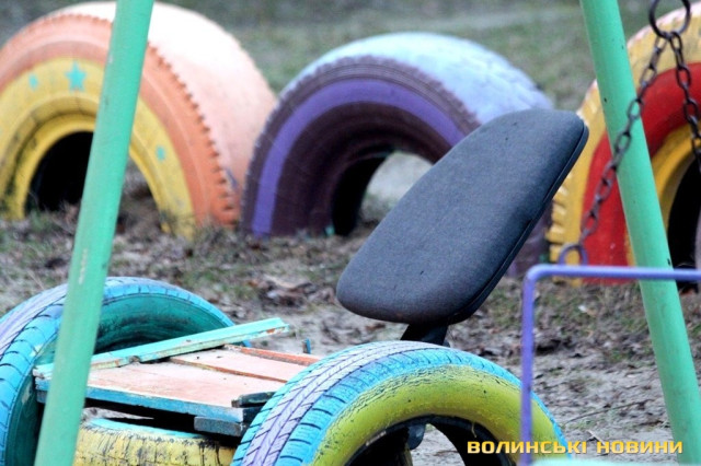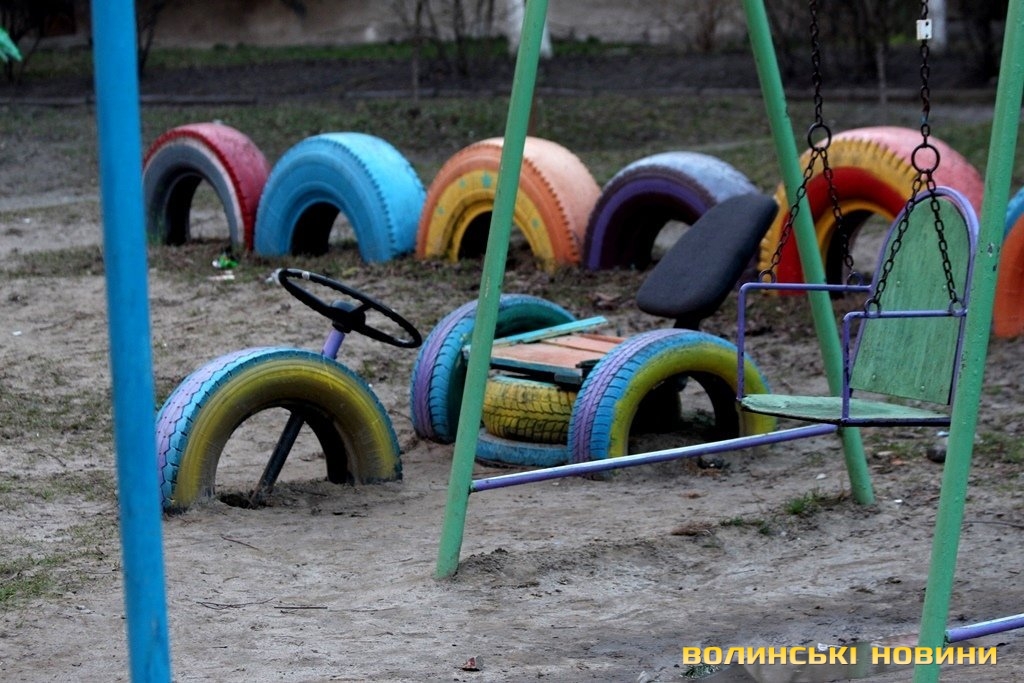 Креатив лучан на цьому не завершився й вони додали цікавинок на майданчику, використовуючи шини для коліс, спинки від поломаних стільців та руль.