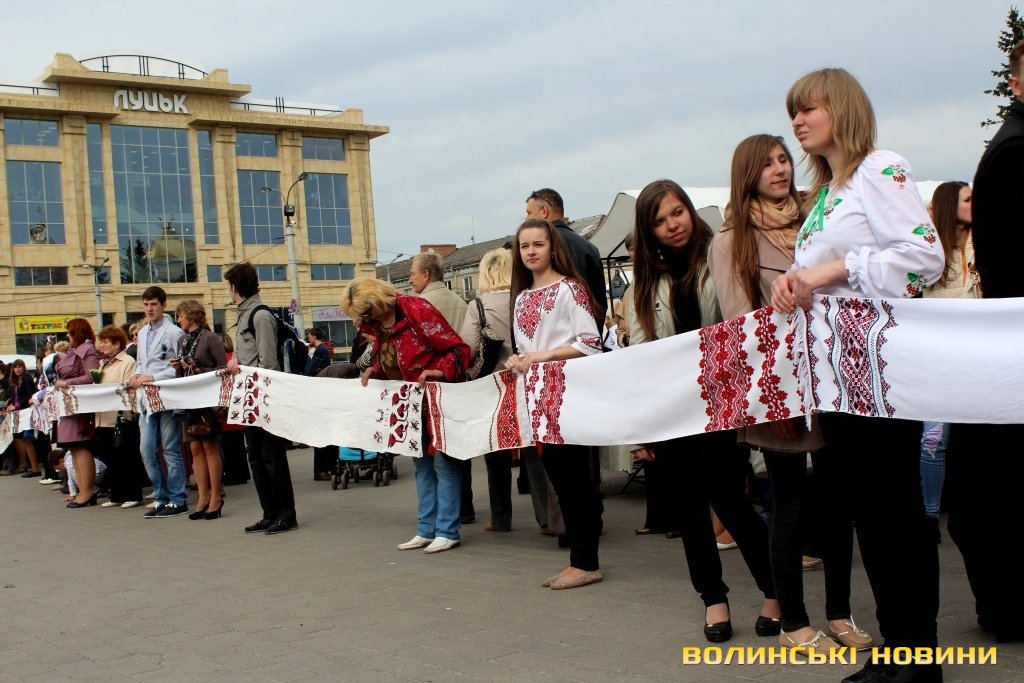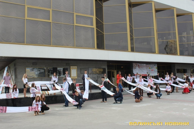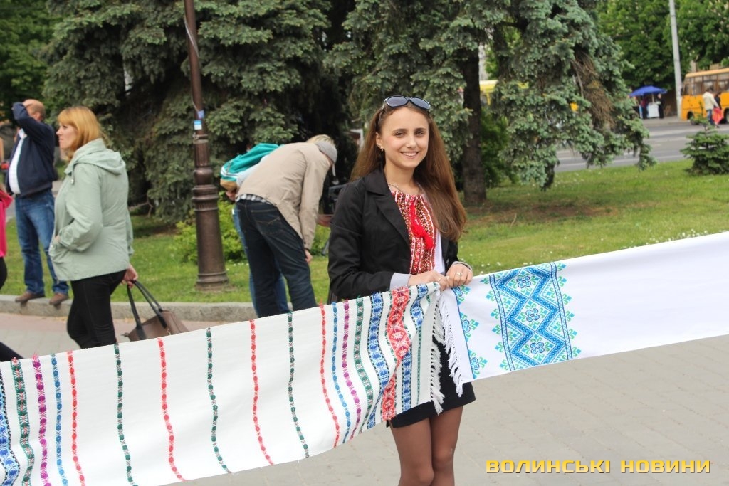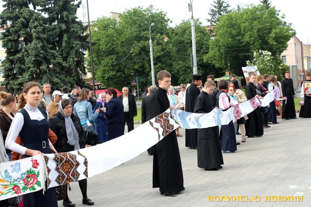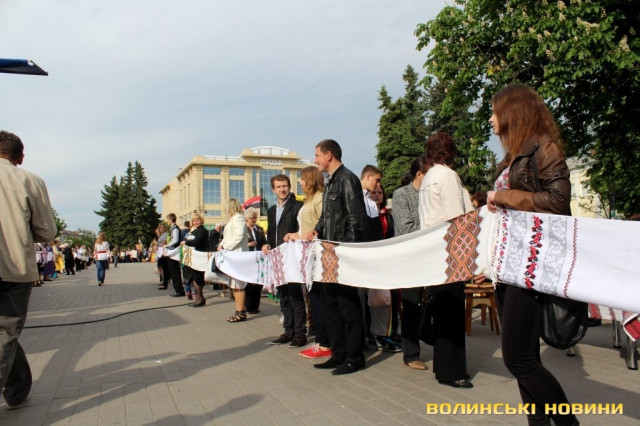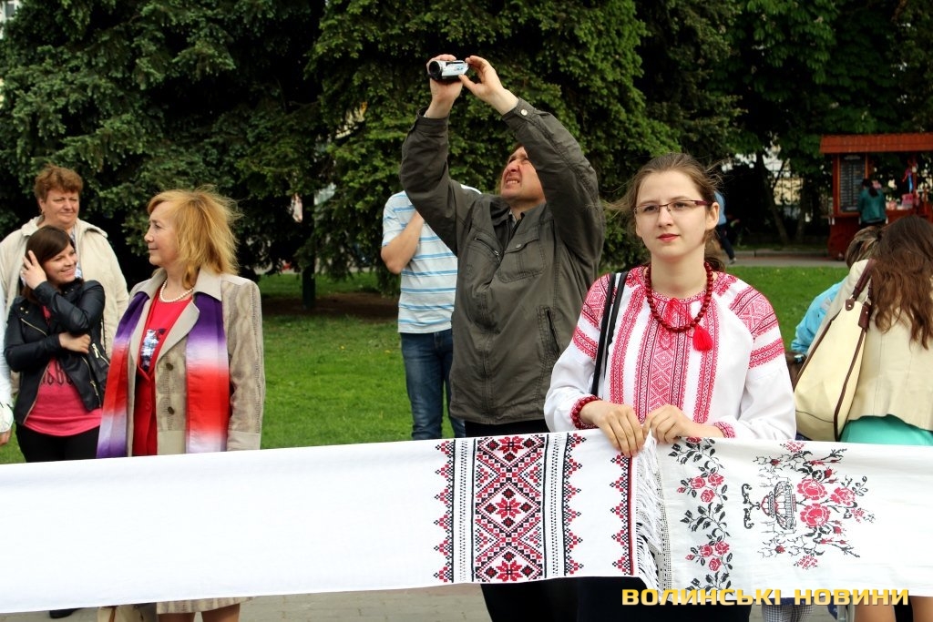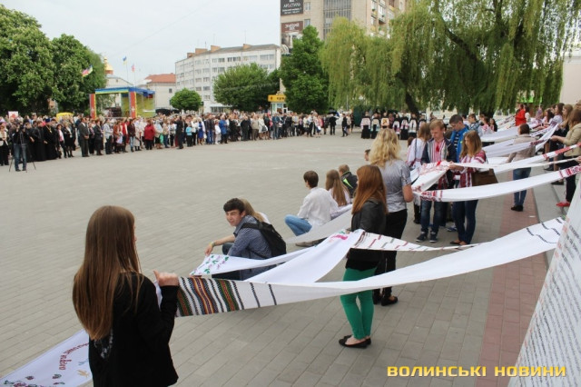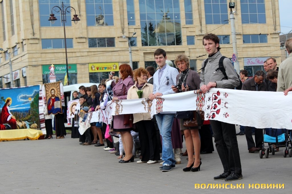 Після цього на Театральному майдані утворили загальний рушник єднання. До акції долучилися не лише молоді лучани, а й представники поважного віку та духовенство.
