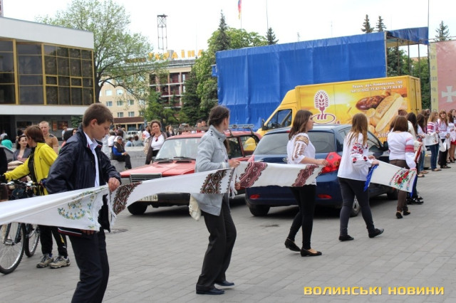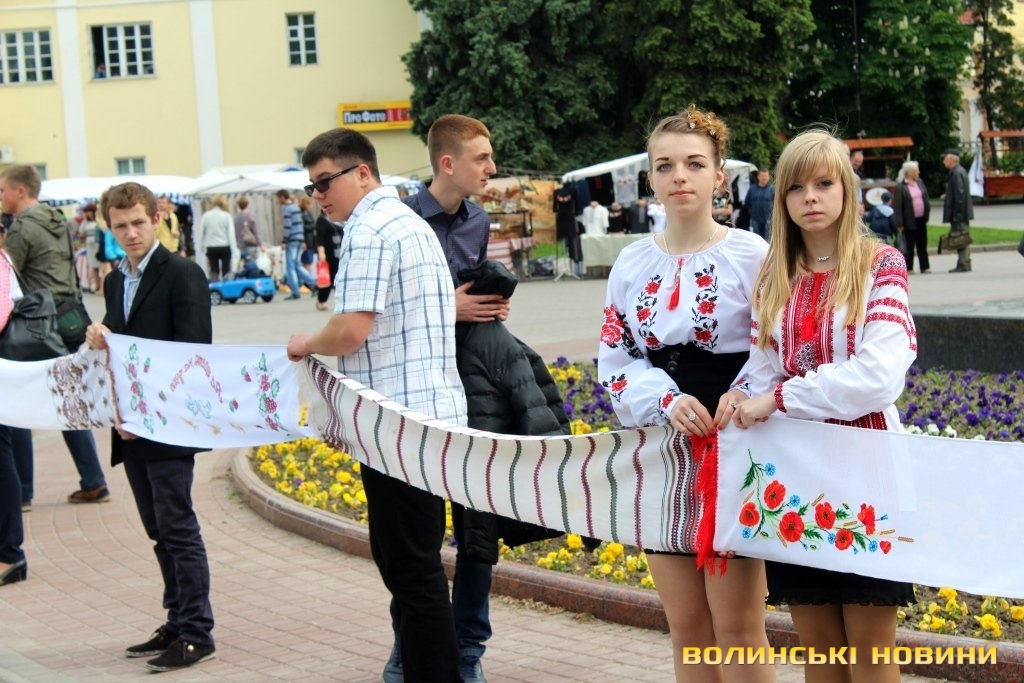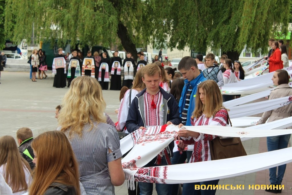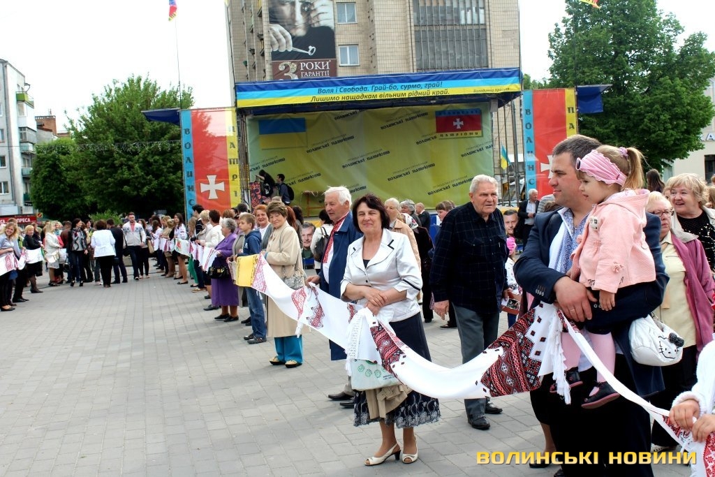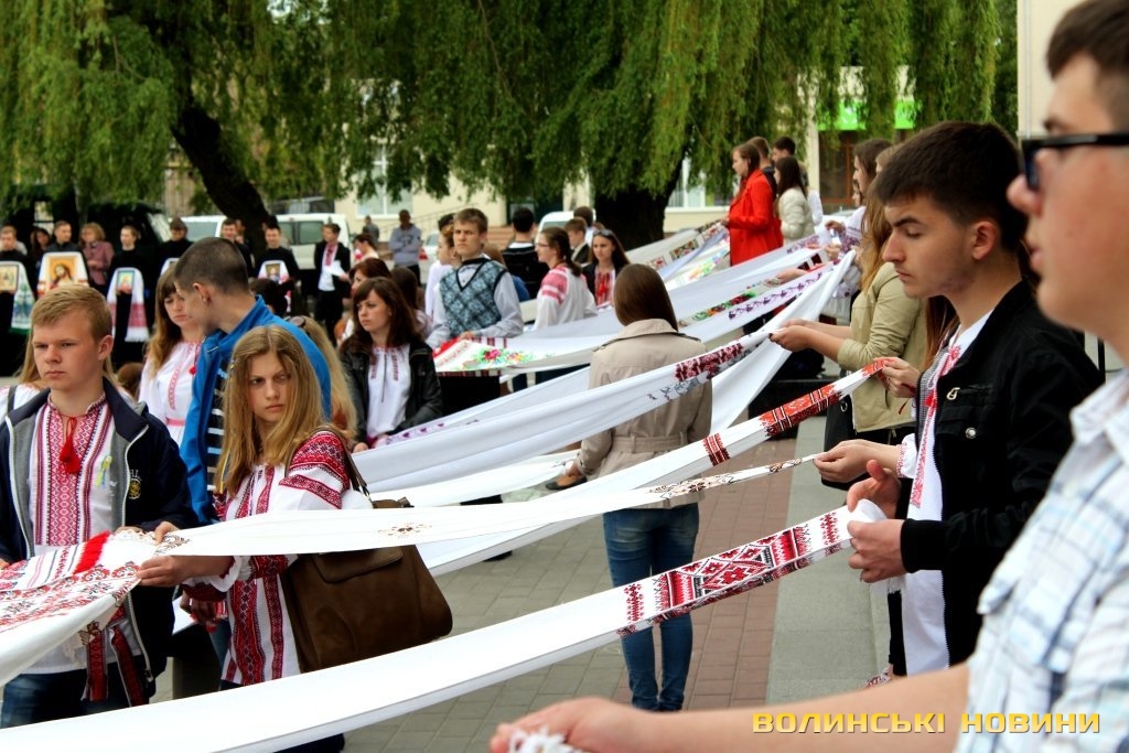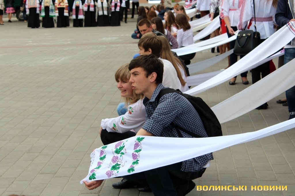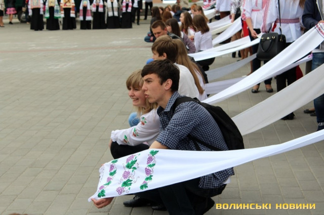 Після цього на Театральному майдані утворили загальний рушник єднання. До акції долучилися не лише молоді лучани, а й представники поважного віку та духовенство.