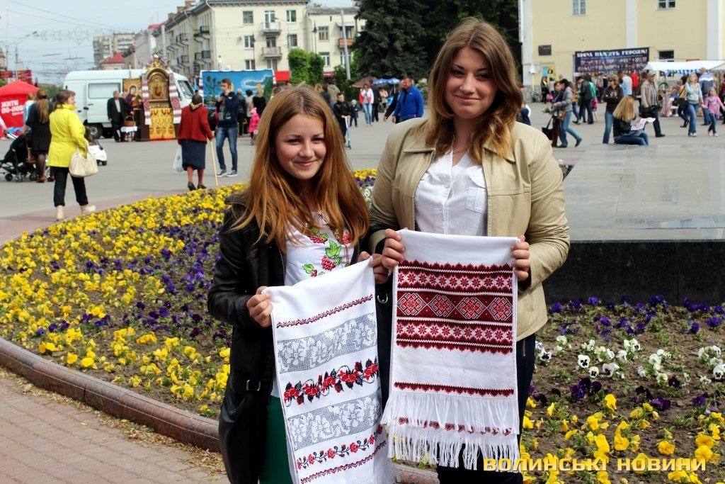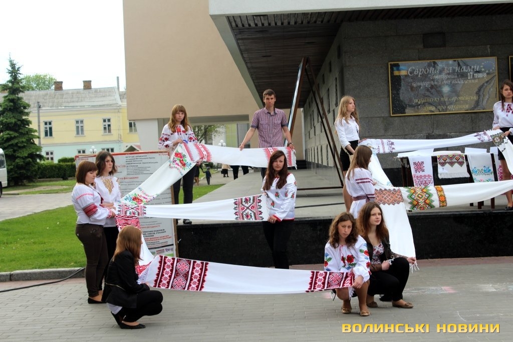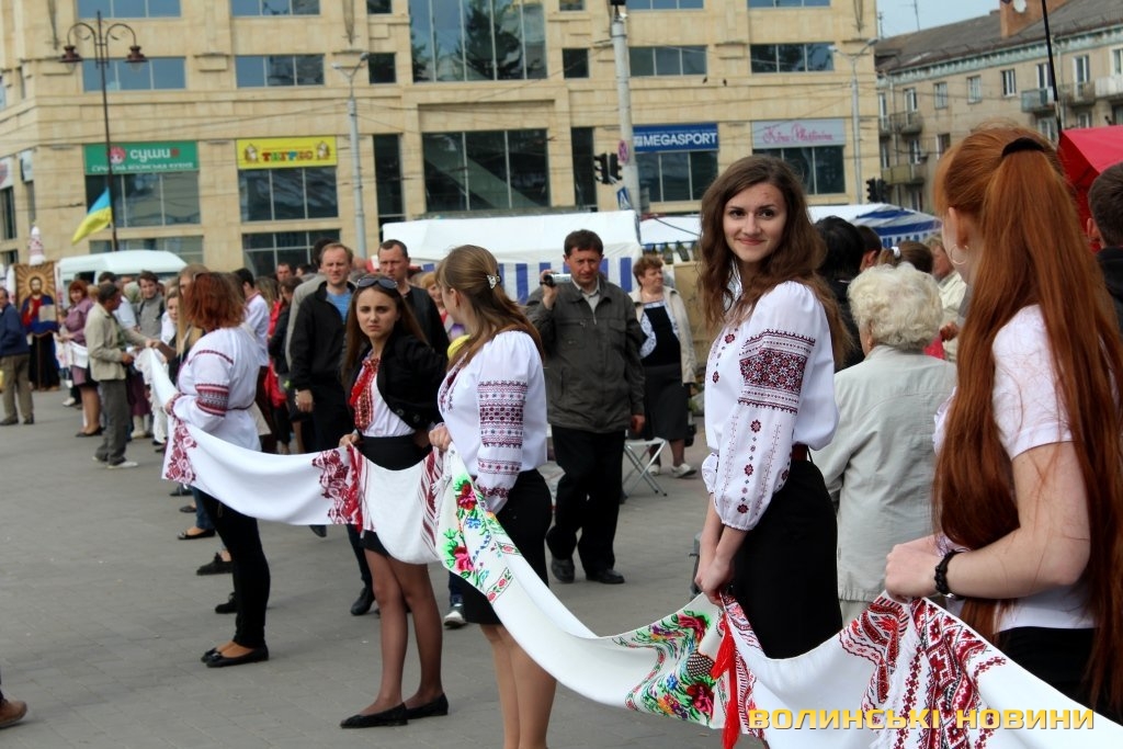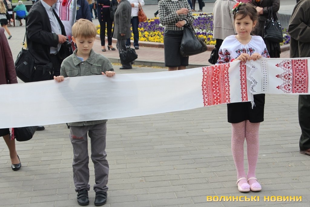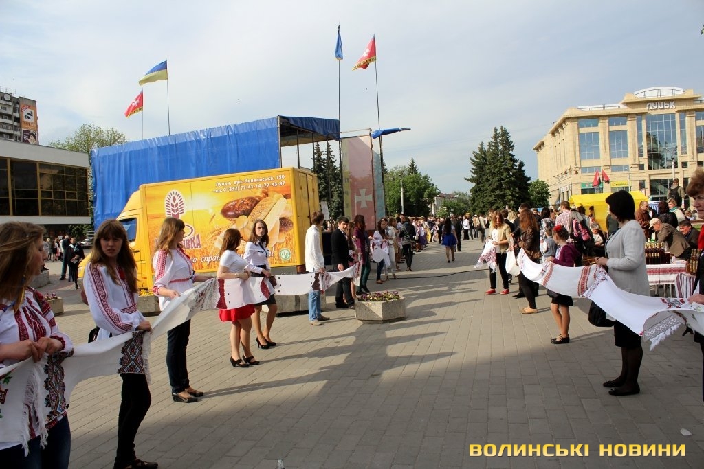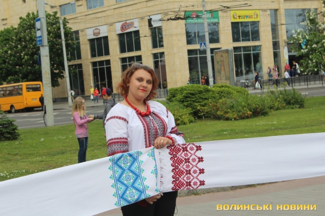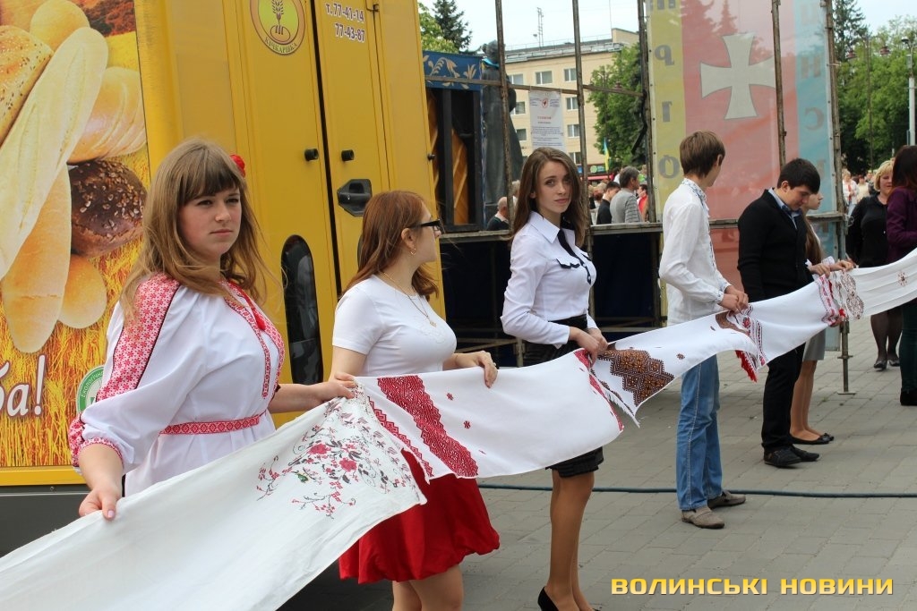 Після цього на Театральному майдані утворили загальний рушник єднання. До акції долучилися не лише молоді лучани, а й представники поважного віку та духовенство.