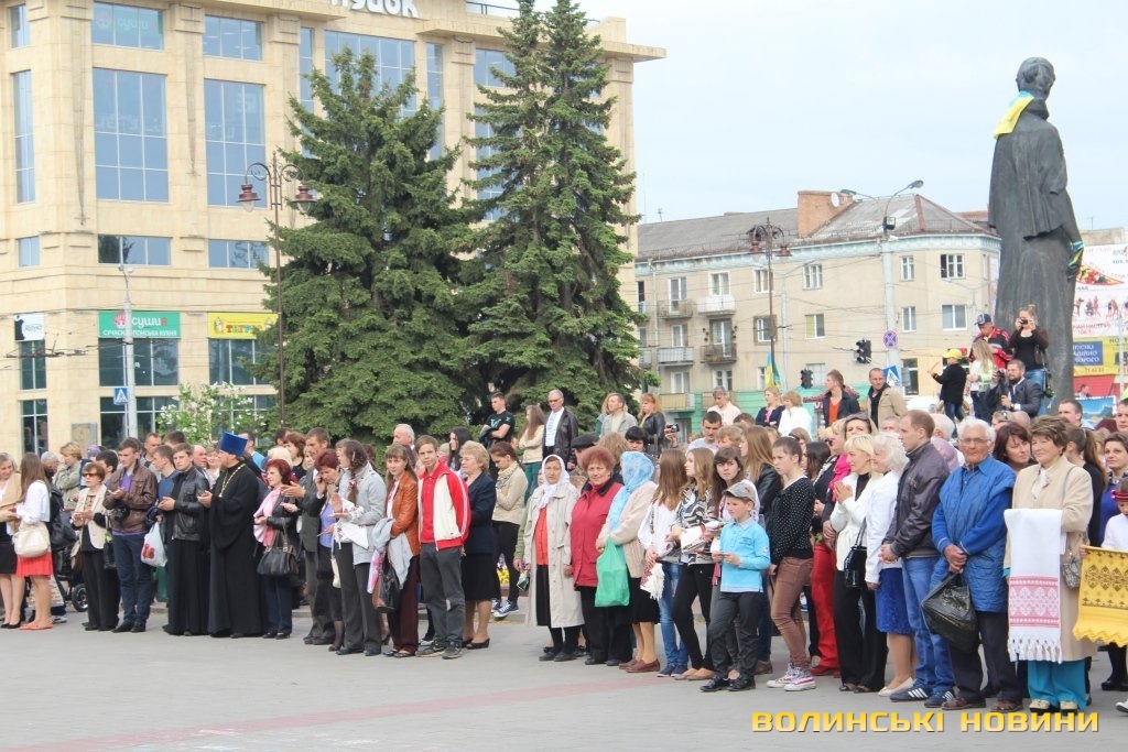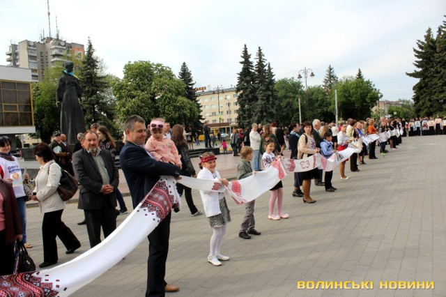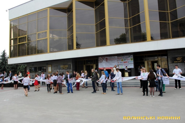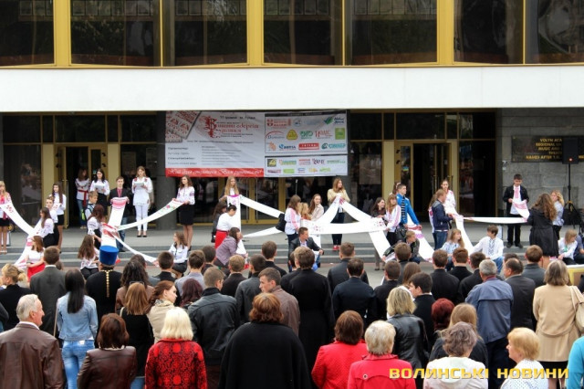 Флешмоб, присвячений заклику до єдності та неподільності України, відбувся 11 травня, у День матері, на Театральному майдані у Луцьку.