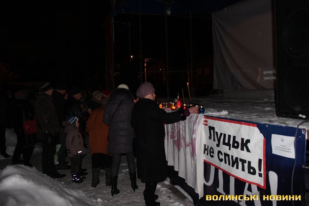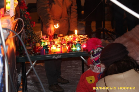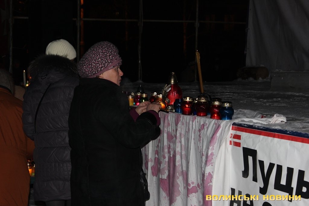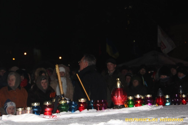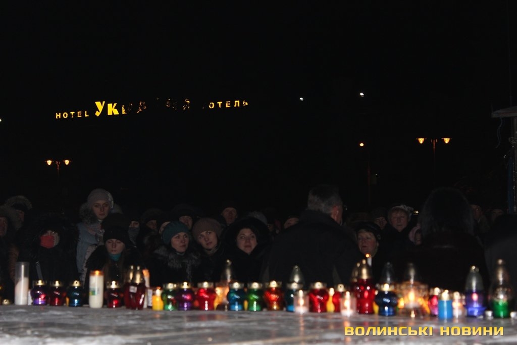 Більше сотні лучан запалили лампадки у пам’ять тих, хто загинув під час протесту на Майдані у Києві.