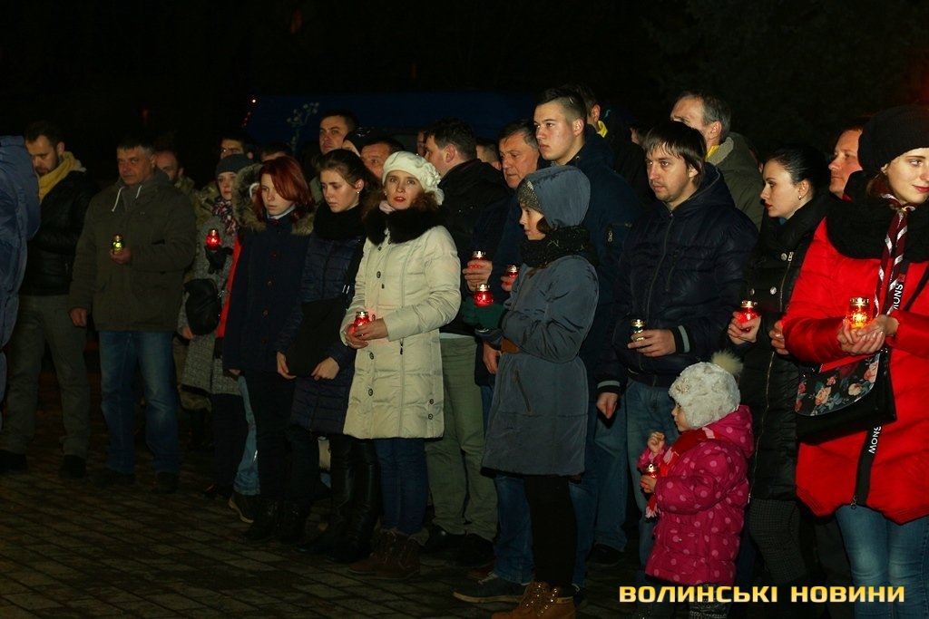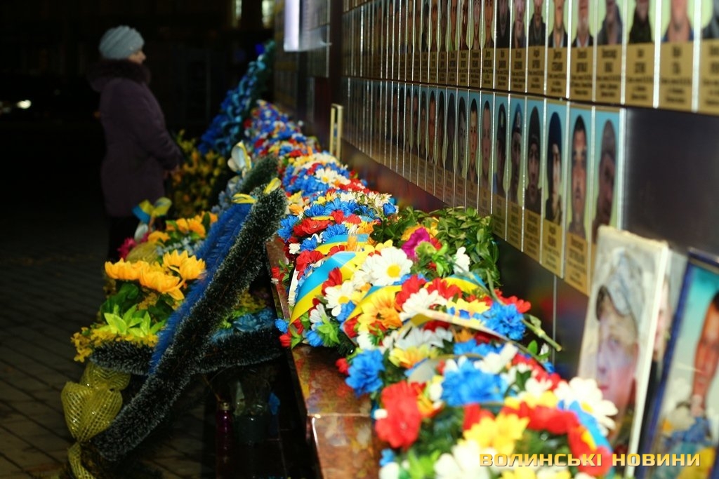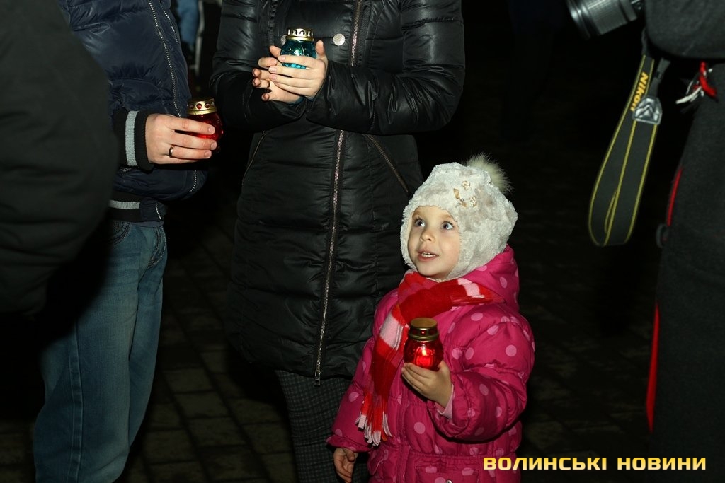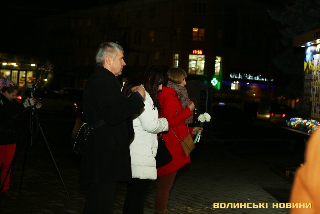 З молитвою і лампадками у Луцьку пом’янули Героїв Небесної сотні. Напередодні Дня Гідності і Свободи, сьогодні, 20 листопада, небайдужі лучани, члени громадських організацій та об’єднань прийшли вшанувати пам’ять тих, хто загинув у Києві та пригадати початок Євромайдану.
