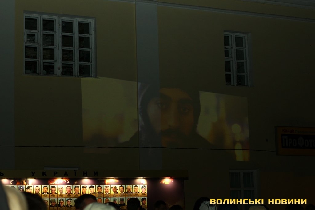 А вже о 18.00 усі, хто відгукнувся на клич громадських активістів, зібралися поруч стенду зі світлинами загиблих на Майдані та в зоні АТО. Після молитви за душі померлих, присутні поклали лампадки біля фотостенду, але розходитися не поспішали: організатори вирішили привезти й встановити проектор, завдяки якому кадри з Євромайдану можуть бачити всі перехожі.
