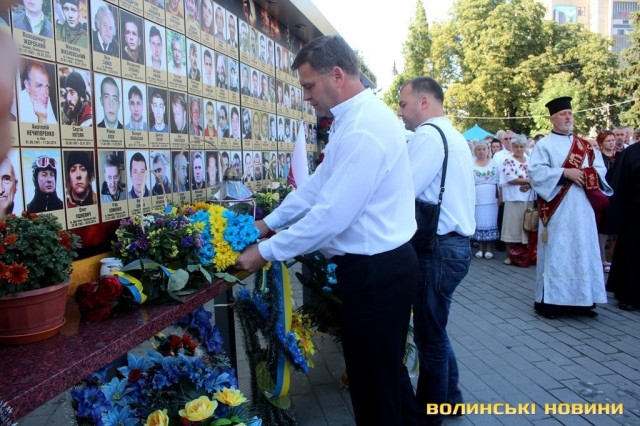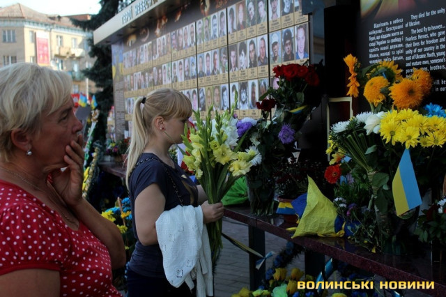 Опісля служби віряни підійшли до стели Героїв Небесної Сотні та загиблих воїнів АТО, і помолилися за упокій їх душ. В пам’ять про їх подвиг, біля стели поклали квіти.