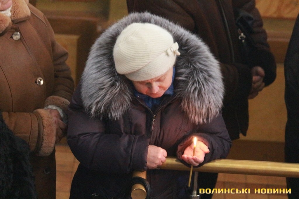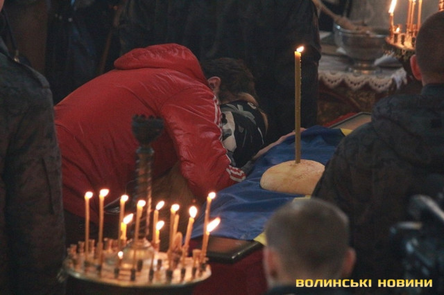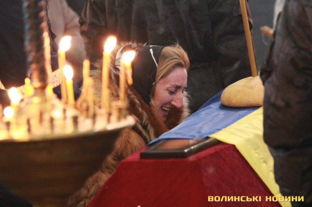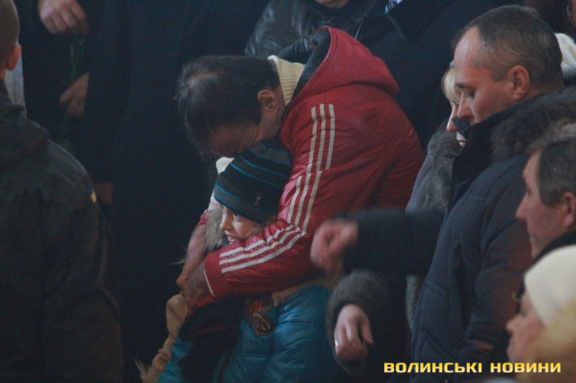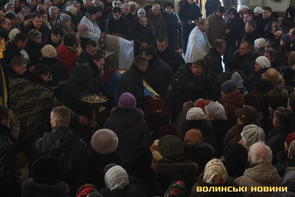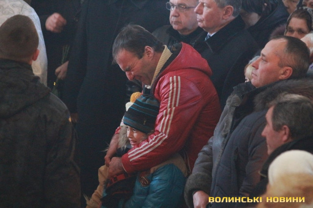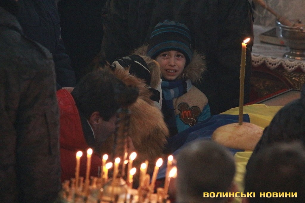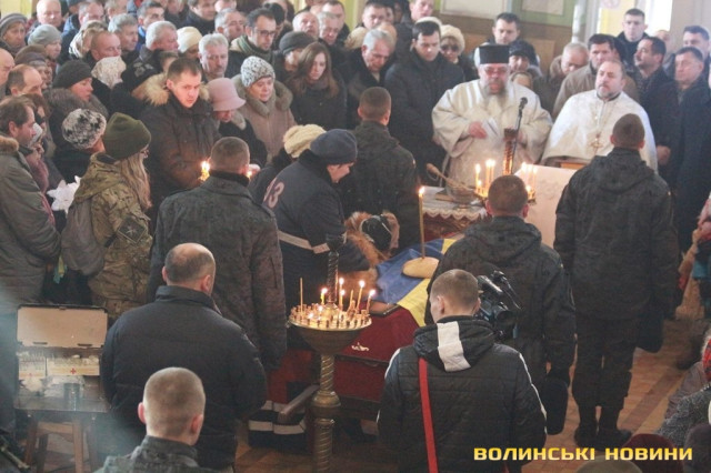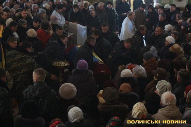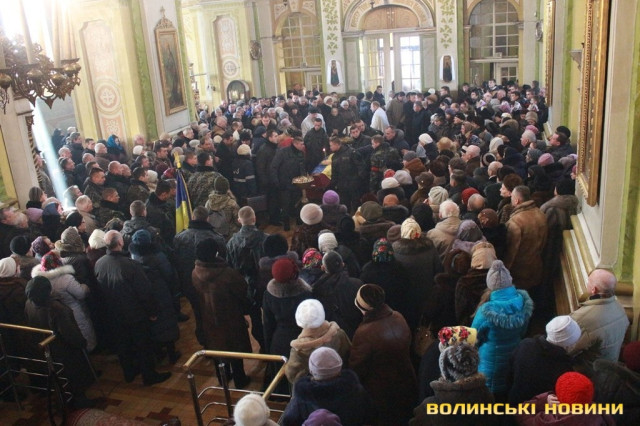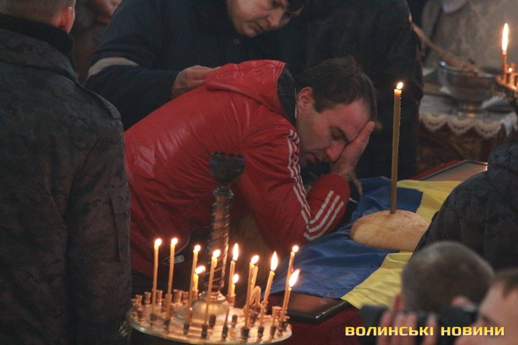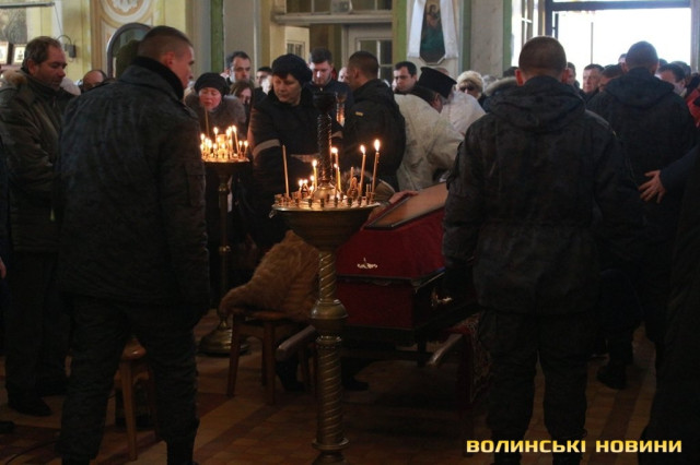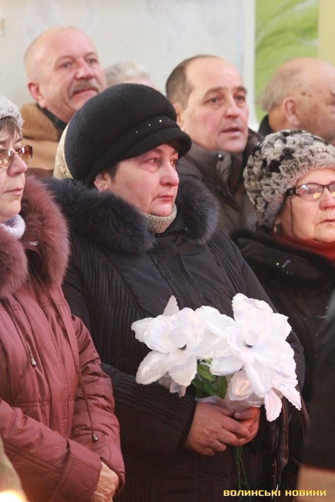 Нагадаємо, раніше Інформаційне агентство Волинські Новини повідомляло про те, що 5 січня під час здійснення ротації добровольців та військовослужбовців за контрактом батальйону Національної гвардії імені генерала Кульчицького в зоні проведення АТО, унаслідок зіткнення військових автомобіля КРаЗ та автобуса «Богдан» в Донецькій області загинуло 12 військовослужбовців. Ще один помер від отриманих травм у лікувальному закладі. Серед загиблих був і волинянин Тарас Герасимюк. До слова, 6 січня з’явились перші фото жахливої автокатастрофи, що трапилась на Донбасі.Так, відспівування загиблого відбулось сьогодні, 8 січня, у верхньому храмі Свято-Троїцького кафедрального собору. Під час заупокійної молитви працівники медичної швидкої допомоги ні на мить не залишали вбиту горем матір, яка, побиваючись за власною дитиною, увесь час втрачала свідомість.«Сьогодні другий день Різдва. Здавалося б, свято, усмішки, колядки. Але разом з тим – смуток. Вбита горем мама не знаходить собі місця. Через біль народила вона Тараса, даючи йому все: ніжність, материнські обійми і можливість любити Україну. Так, мати може пишатися сином-героєм. Але, я впевнений, сьогодні вона б віддала геть усе, аби його повернути. Ми безсилі перед таким бажанням, але Бог – всемогутній. Тож через молитву ми просимо аби його молода душа перебувала у Вічному Божому Царстві. І скільки буде існувати Українська земля, допоки лунатиме гімн та житиме останній українець, ми будемо пам’ятати усіх тих, хто віддав власне життя. Захищаючи нас», - звернувся під час проповіді настоятель собору отець Микола до родини загиблого та усіх присутніх.