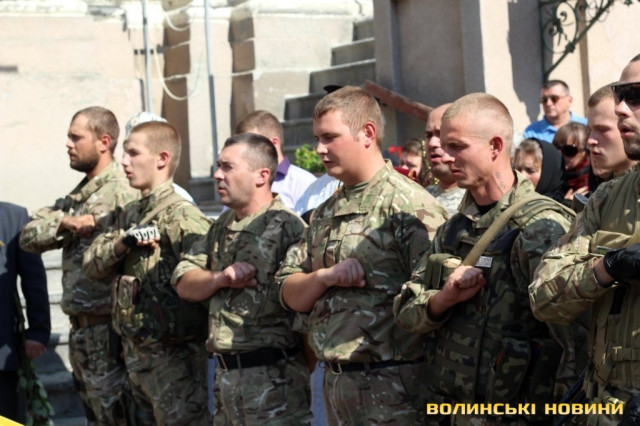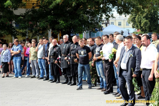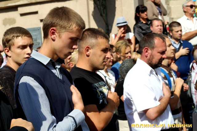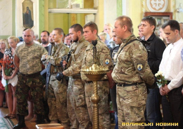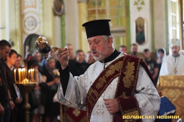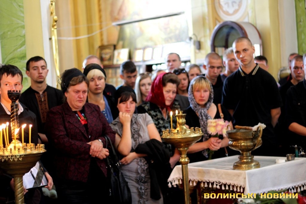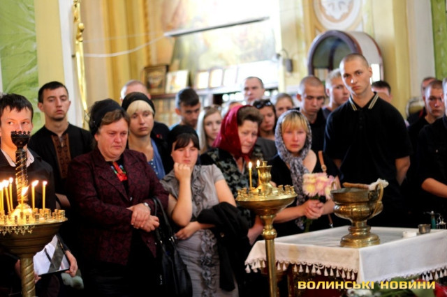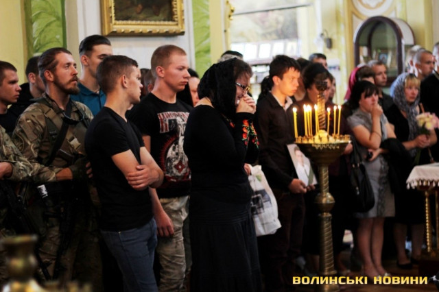 Як зазначив у храмі протоієрей Віталій Собко, знову та знову на Волині жалоба, знову життя та смерть - поруч. Так, завтра, у День Незалежності, відбудеться прощання із полеглим на Сході бійцем батальйону «Айдар» Сергієм Климчуком. Проте не потрібно впадати у відчай та зупинятися, тому що це не питання життя і смерті наших синів та братів, а питання життя і смерті України.