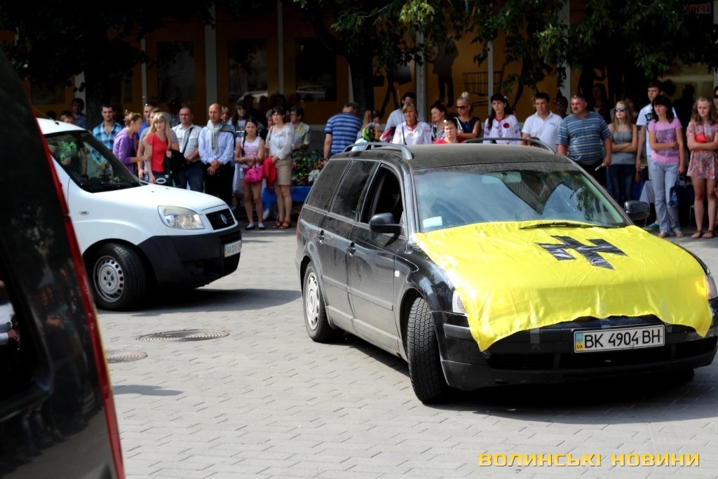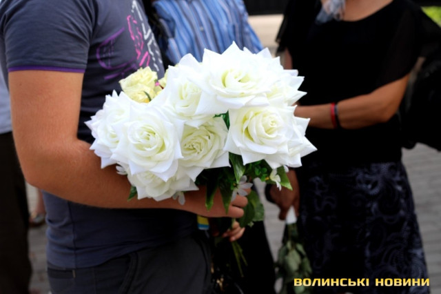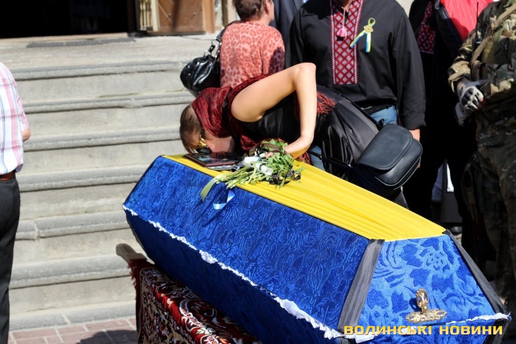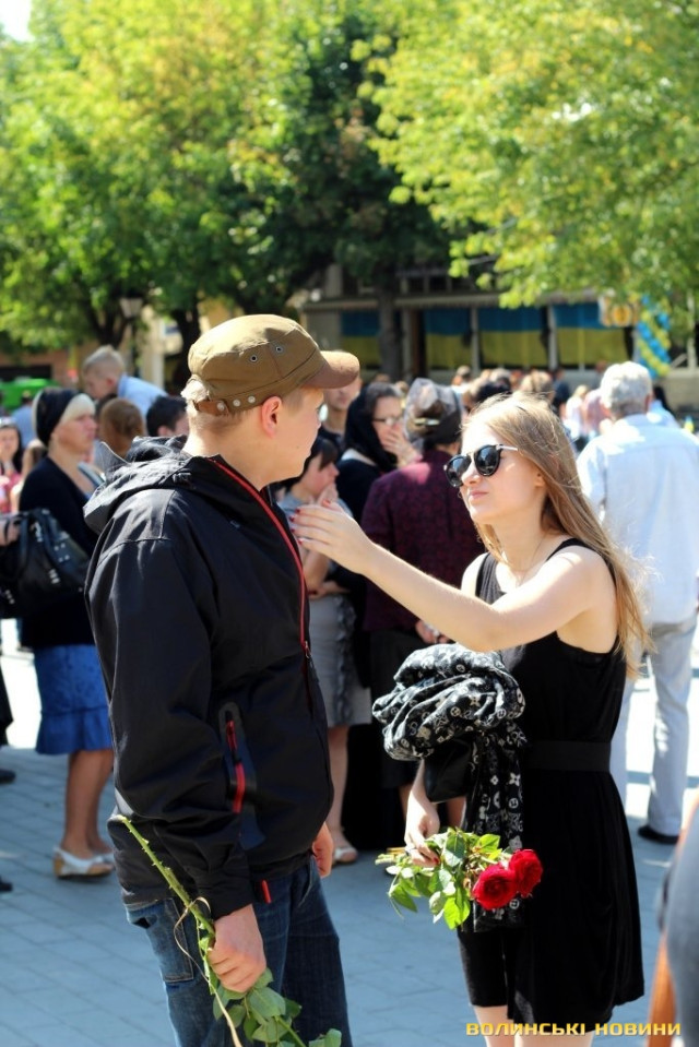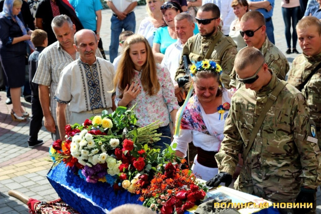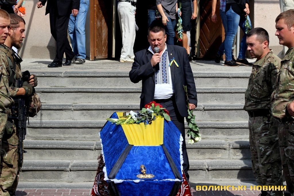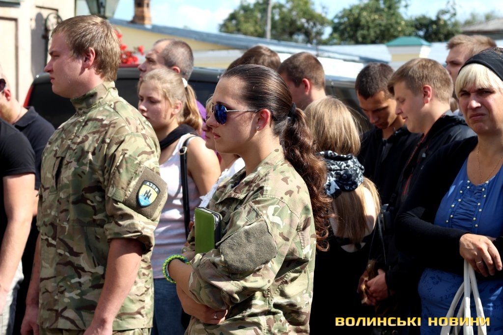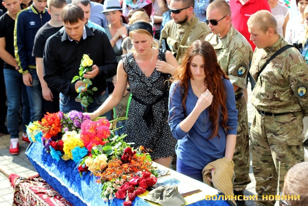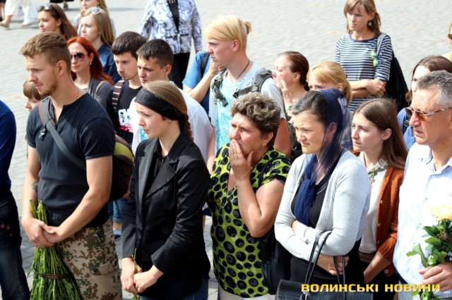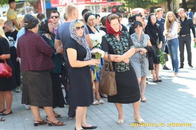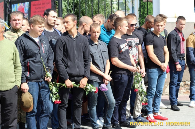 Попрощатися з героєм прийшли представники обласної та міської влад, революційних громадських організацій, молодь, пересічні лучани та побратими із батальйону «Азов», одягнені в уніформу та зі зброєю.