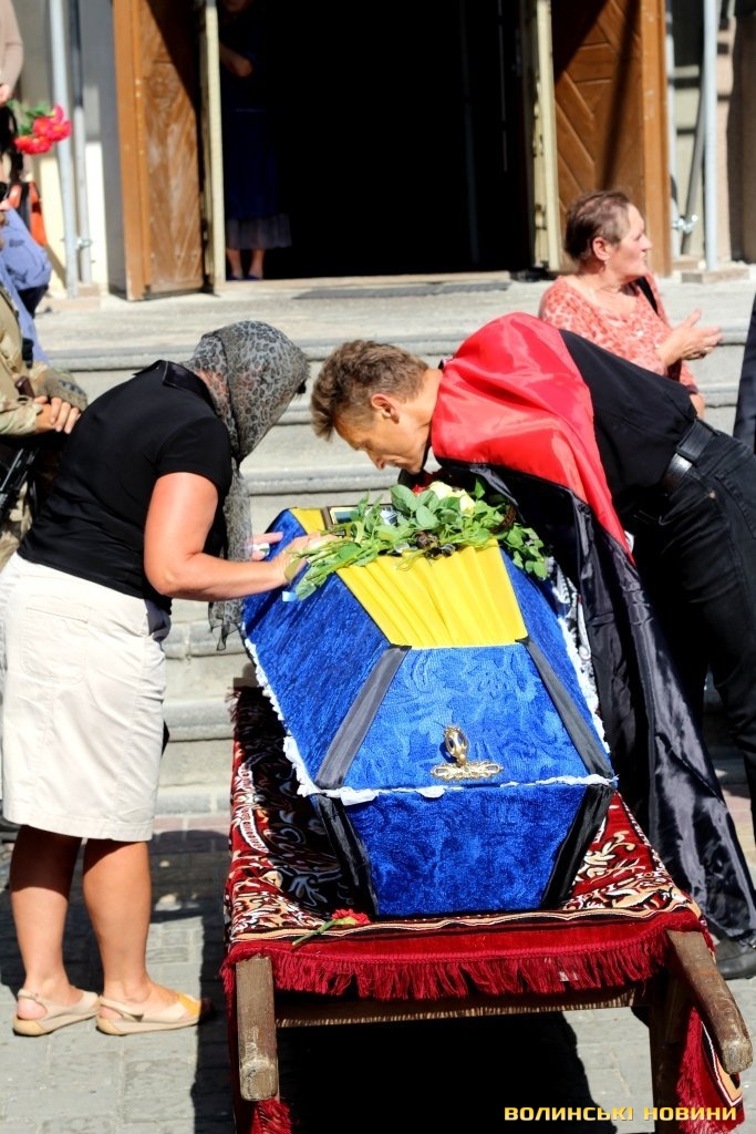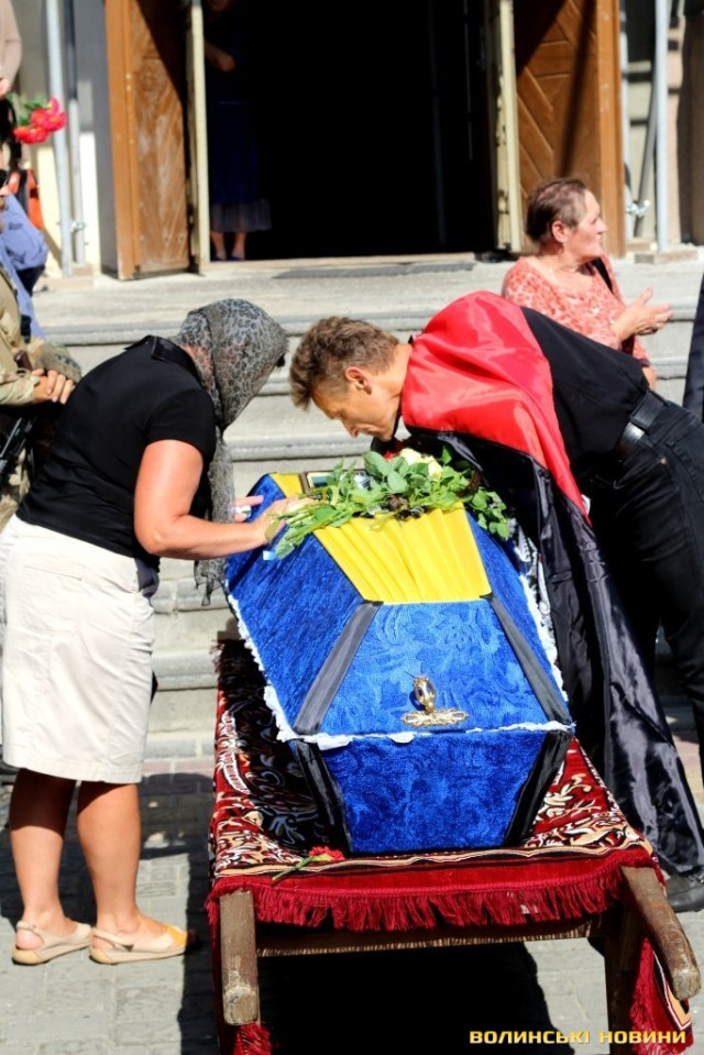 Над труною героя прочитали декалог українського націоналіста та виконали Державний гімн України. Неодноразово лунали вигуки «герої не вмирають», «слава нації – смерть ворогам», «Слава Україні – Героям слава». Прощання із бійцем «Азову» відбулося під супровід пісні «Пливе кача». Поховають героя у селищі Маневичі.
