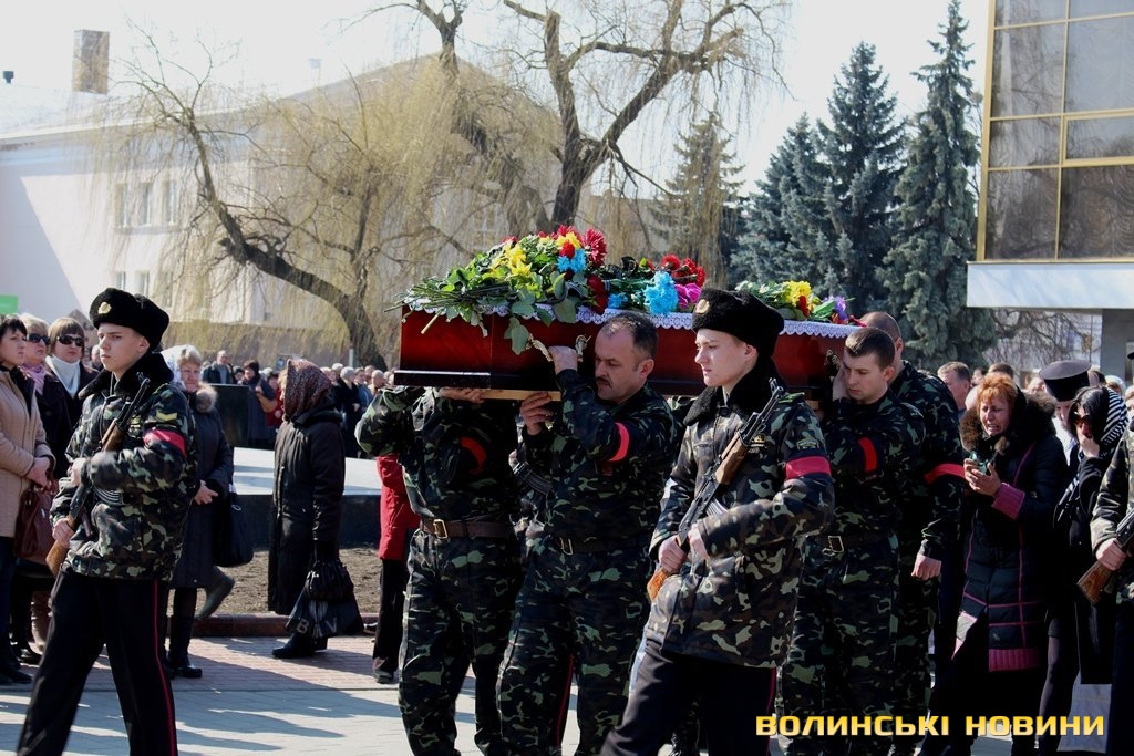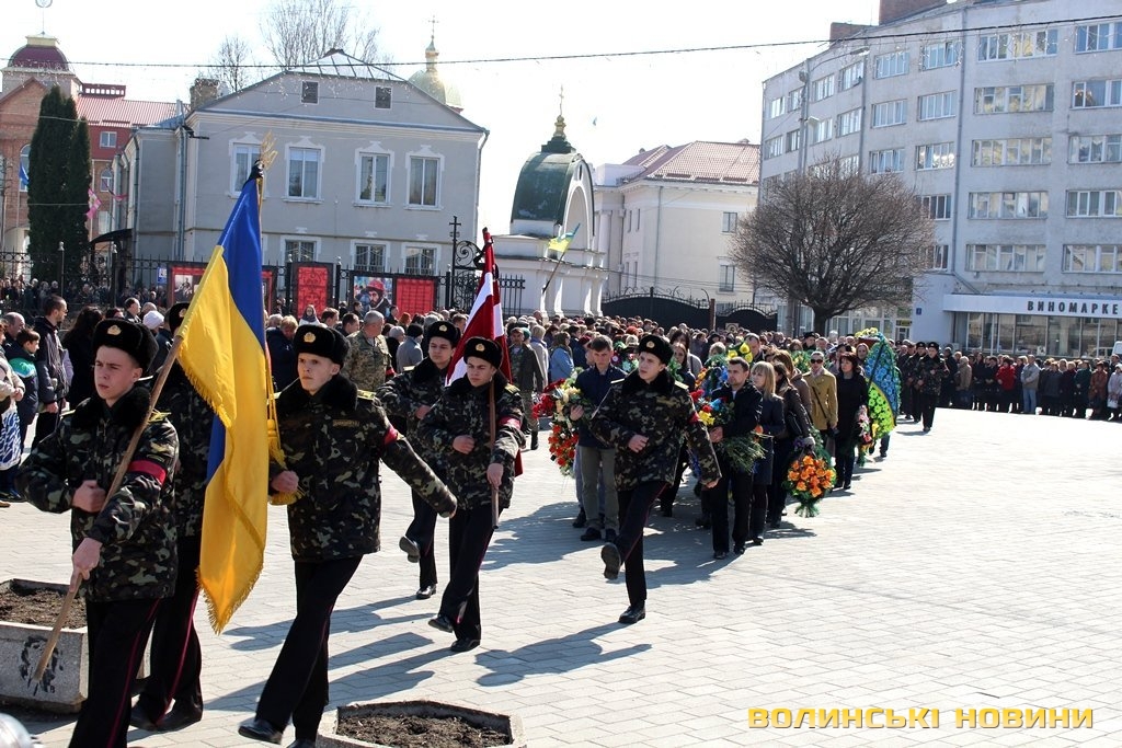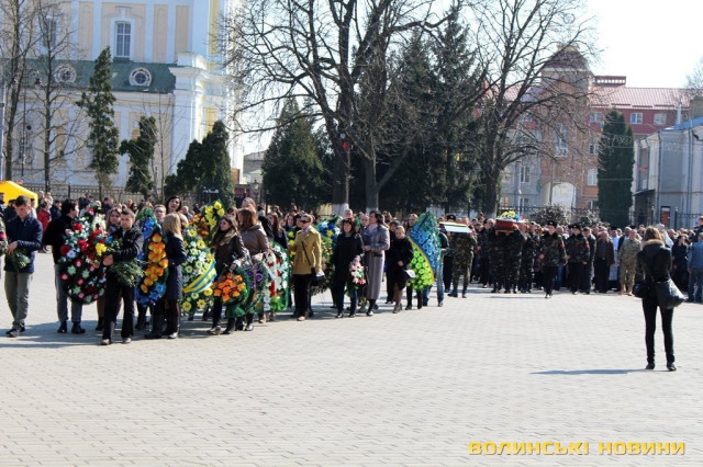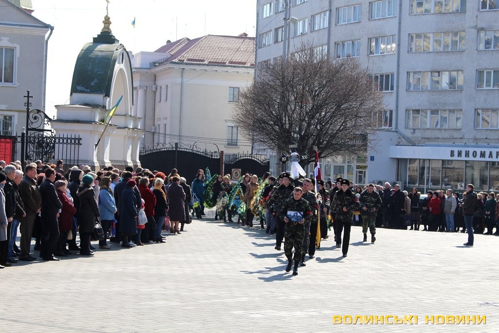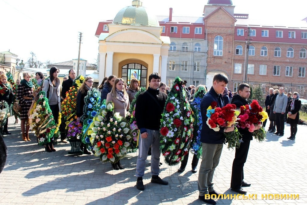 Сьогодні, 24 березня, лучани прощалися зі своїм земляком, а у місті знову оголошений День жалоби. Перед труною несли коровай, адже воїн не встиг створити свою сім’ю. Вдома у нього залишилися батьки й сестра.Митрополит Луцький та Волинський Михаїл в своєму слові зазначив: кожна втрата – це не тільки горе батьків, це - біль і скорбота всієї християнської родини.