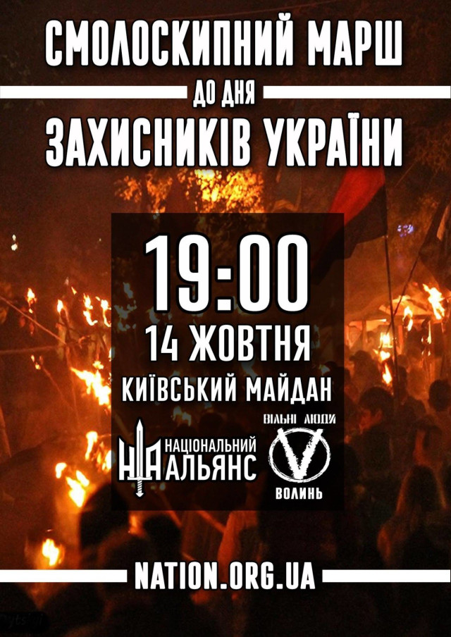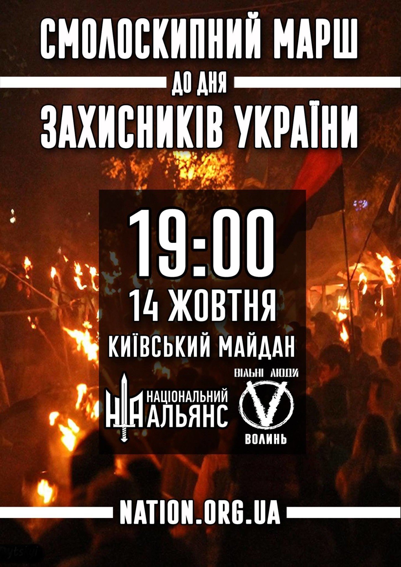 14 жовтня о 19:00 на Київському майдані зберуть охочих пройтися смолоскипним ходом з нагоди Дня захисника України та Дня створення УПА.