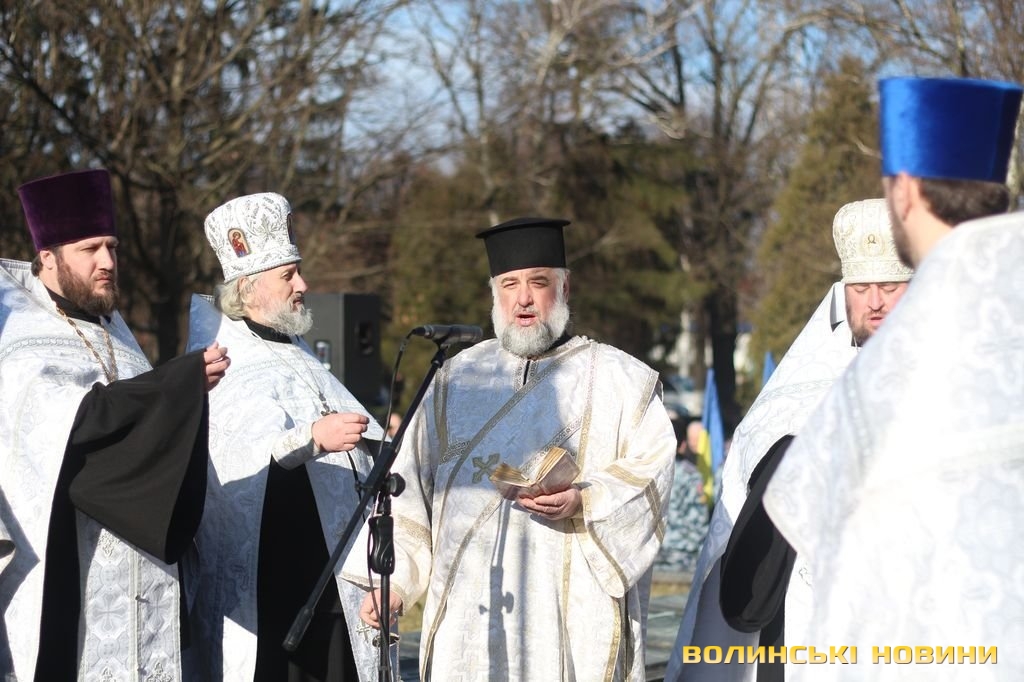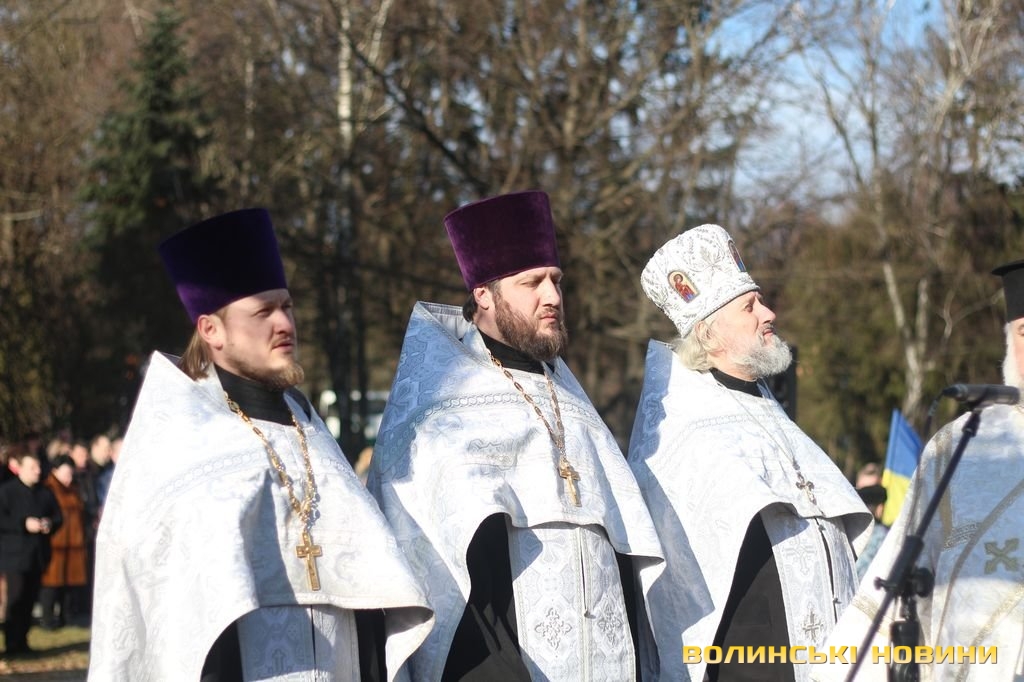 Після чого закликав присутніх лучан та представників міської і обласної влади долучитись до спільної молитви за душі тих, хто поліг за мирне небо.Зі слів першого заступника Луцького міського голови Святослава Кравчука, нині лише 5 чоловік з тих, хто визволяв 71 рік тому Луцьк від фашистських загарбників, залишились живими. Троє проживає на Донбасі, у Києві, Львові. Ще двоє – у місті Гомель (Білорусь) та Уфі (Росія).