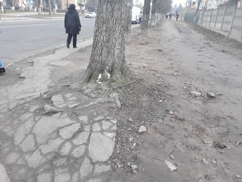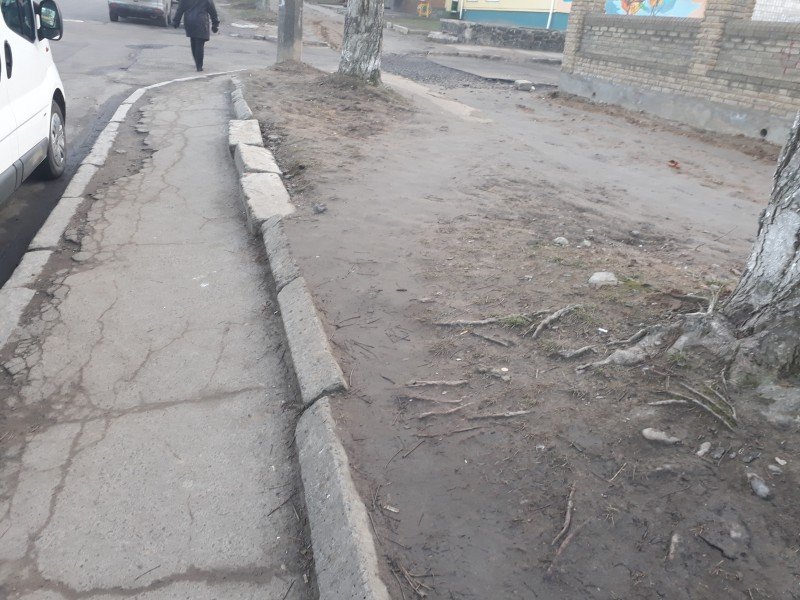 «Частина тротуару була зруйнована з плином часу, частину ж зруйнувала техніка, проводячи якісь роботи. Вивернуті бордюри, зруйнований асфальт, болото замість твердого покриття – вулиця потребує ремонту», – вказала Юлія Сухоставська.