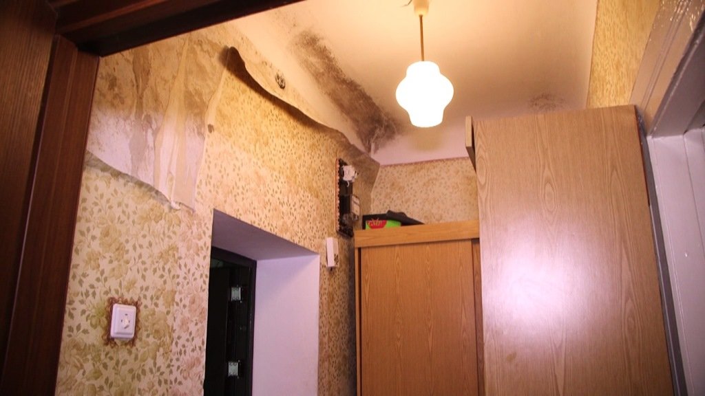 Від вологи тут виступив грибок, зі стін та стелі обвалюється штукатурка. Покрівлю не змінювали ще з моменту будівництва. У людей, які живуть на другому поверсі, кілька років просто з горища текла вода. Від цього у квартирах почорніли стелі. Проте голова ОСББ Людмила Губій каже, що коли ЖКГ передало будинок на баланс ОСББ, то в паперах значилося, що він в ідеальному стані.Ще одна мешканка Юлія Юзвик, яка купила квартиру в цьому будинку півроку тому, лише коли переселилася, зрозуміла, що потрапила в халепу.