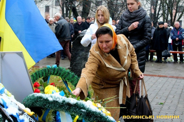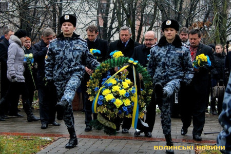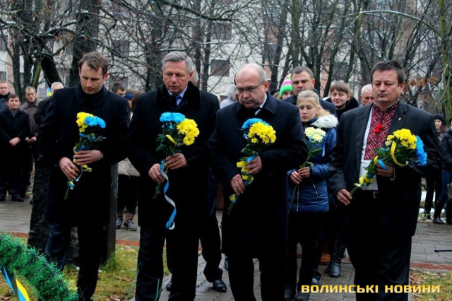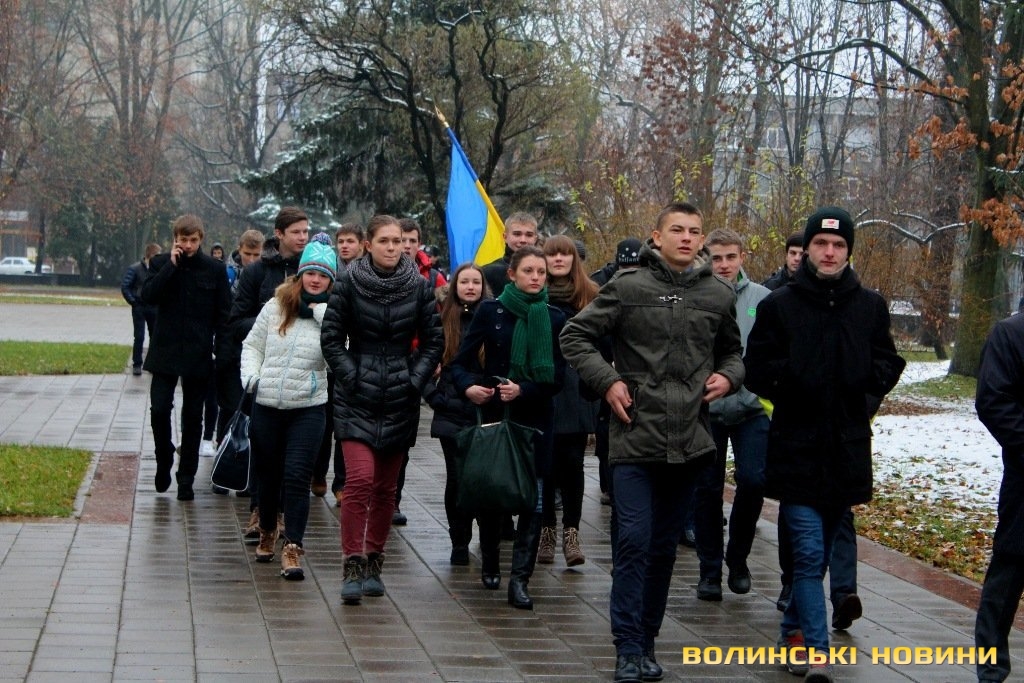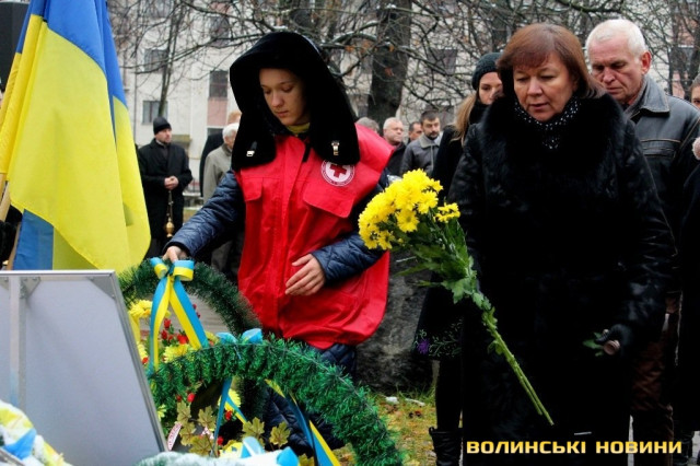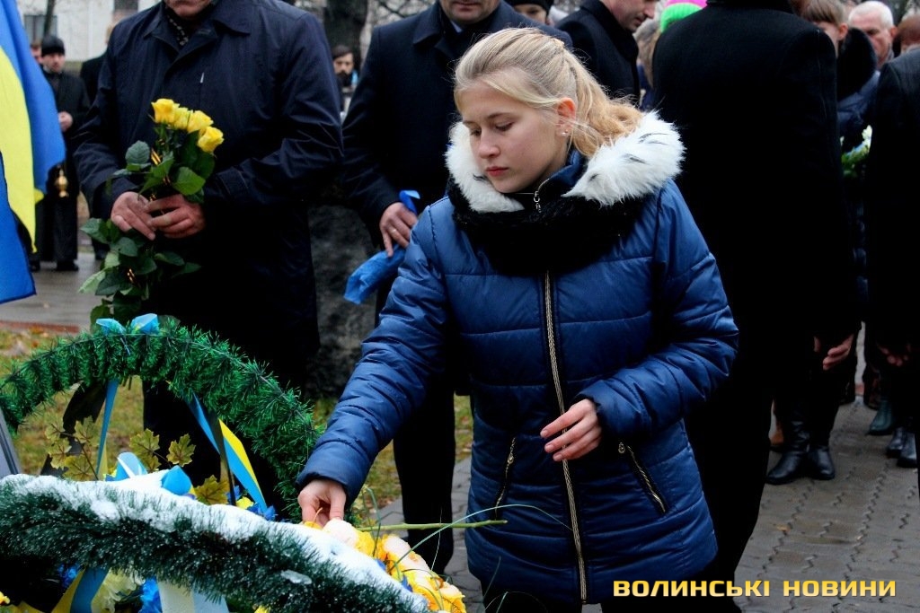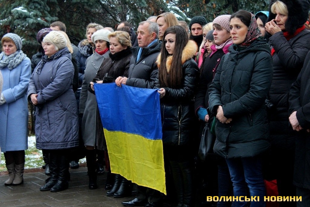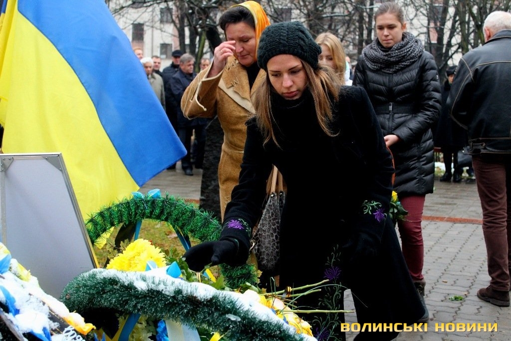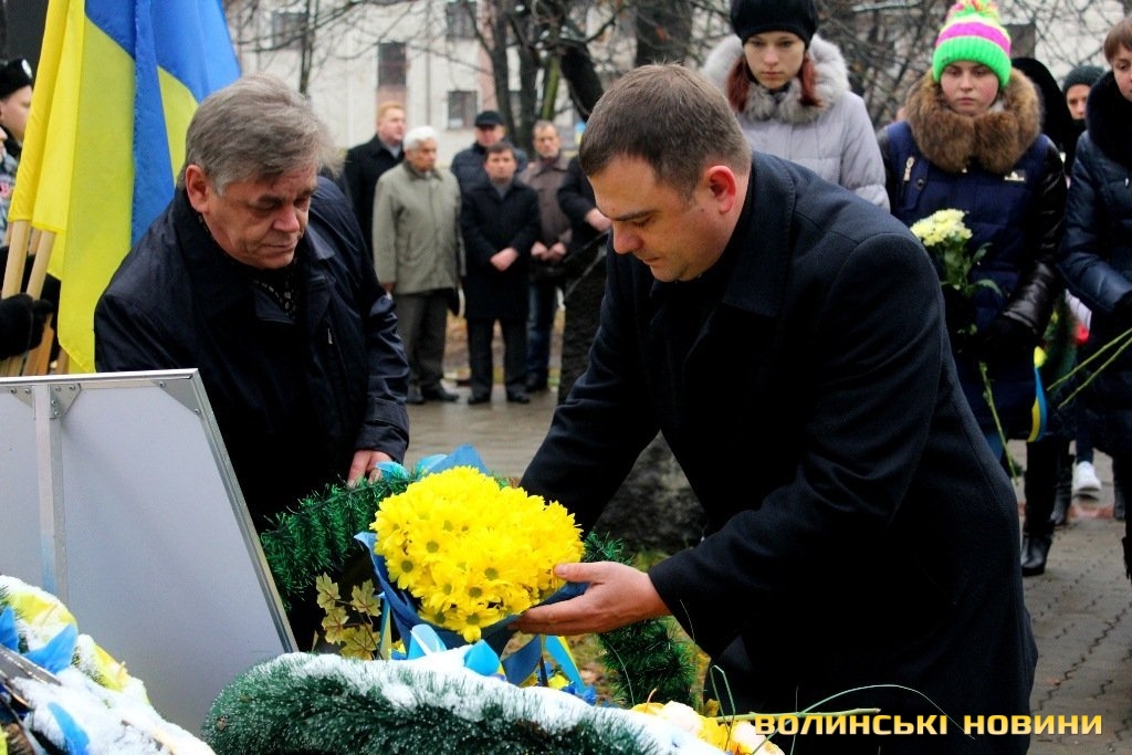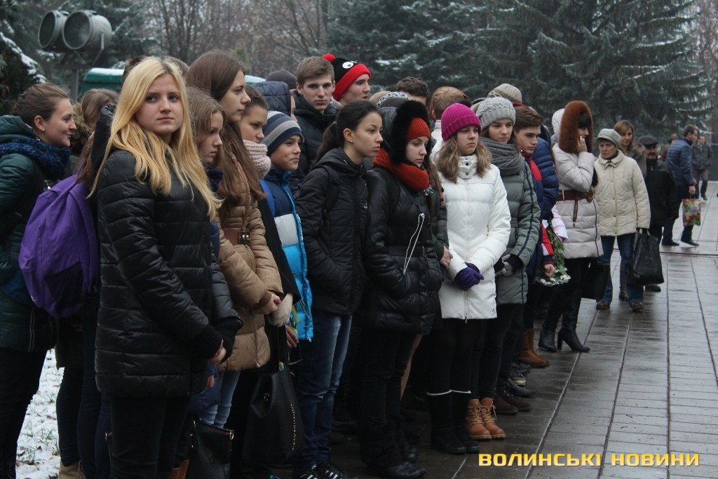 Так, вклонитися тим, хто поклав свою душу, аби написати перші сторінки «книги гідності України», прийшло понад сотня лучан. Серед них можна було впізнати тих, чиї обличчя уже стали «візитною карткою» луцького майдану.Також на меморіал прийшли посадовці міста та області.