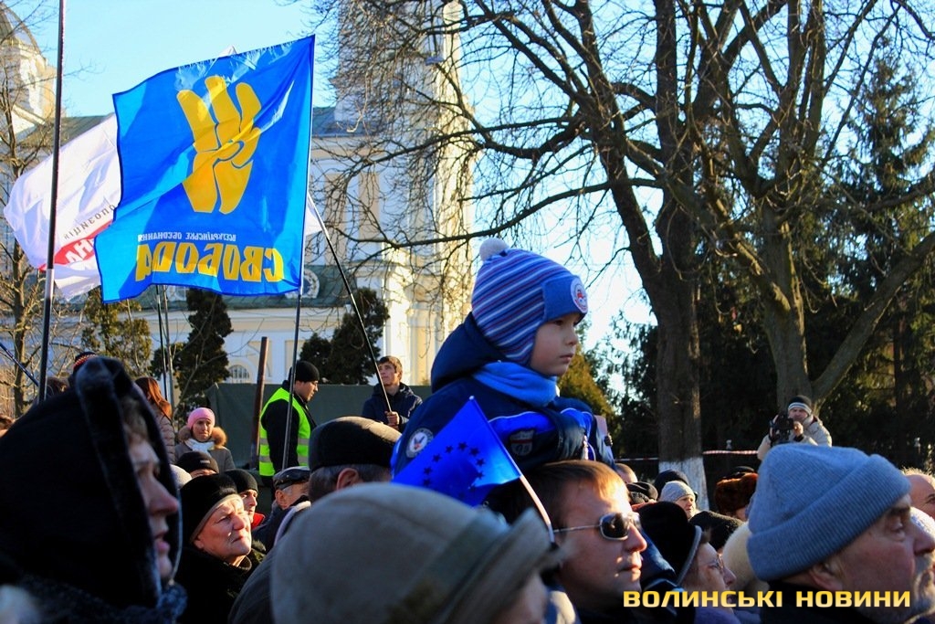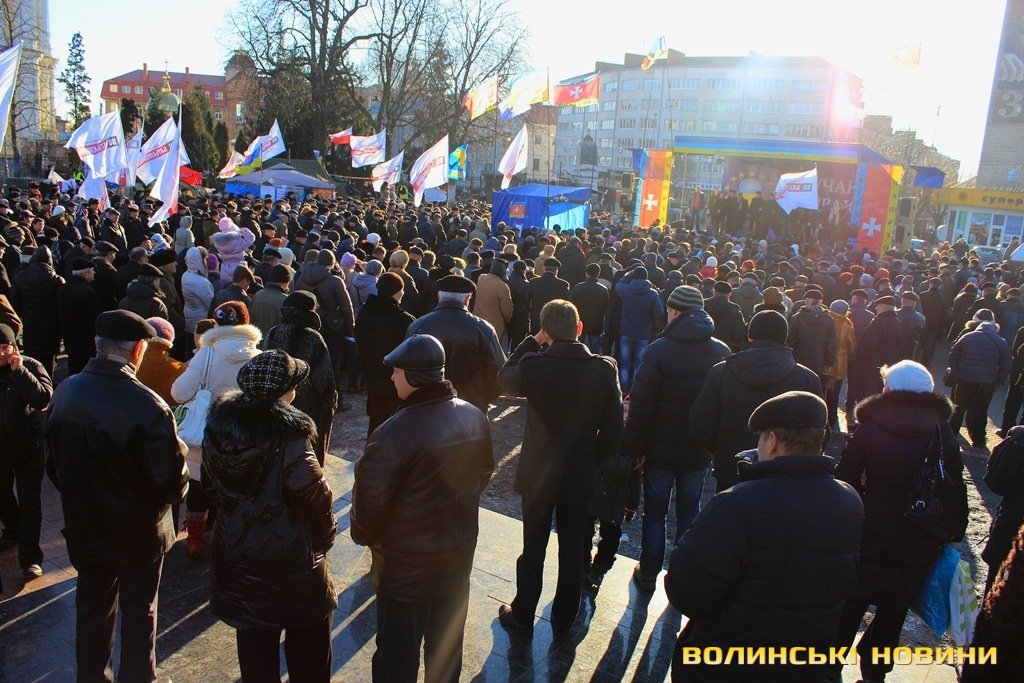 Організатори та учасники заходу вимагали негайно закрити кримінальні справи проти усіх учасників акцій протесту та звільнити прокурора Волинської області Андрія Параку та начальника УМВС у Волинській області Олександра Терещука, відправити у відставку голову Волинської ОДА Бориса Клімчука та голову Волинської облради Володимира Войтовича, підтримати вимоги Майдану у Києві, звільнення голови РНБО Андрія Клюєва, міністра МВС Віталія Захарченка, відставка уряду Азарова та покарання усіх, причетних до побиття мирних громадян.