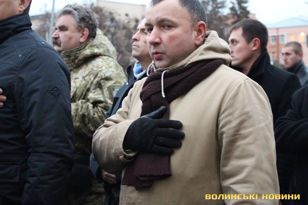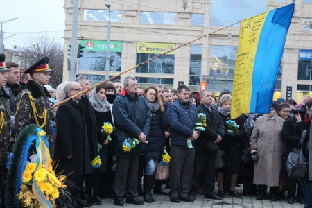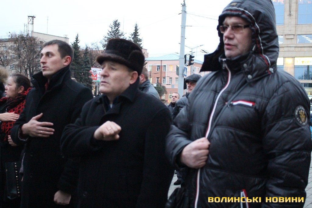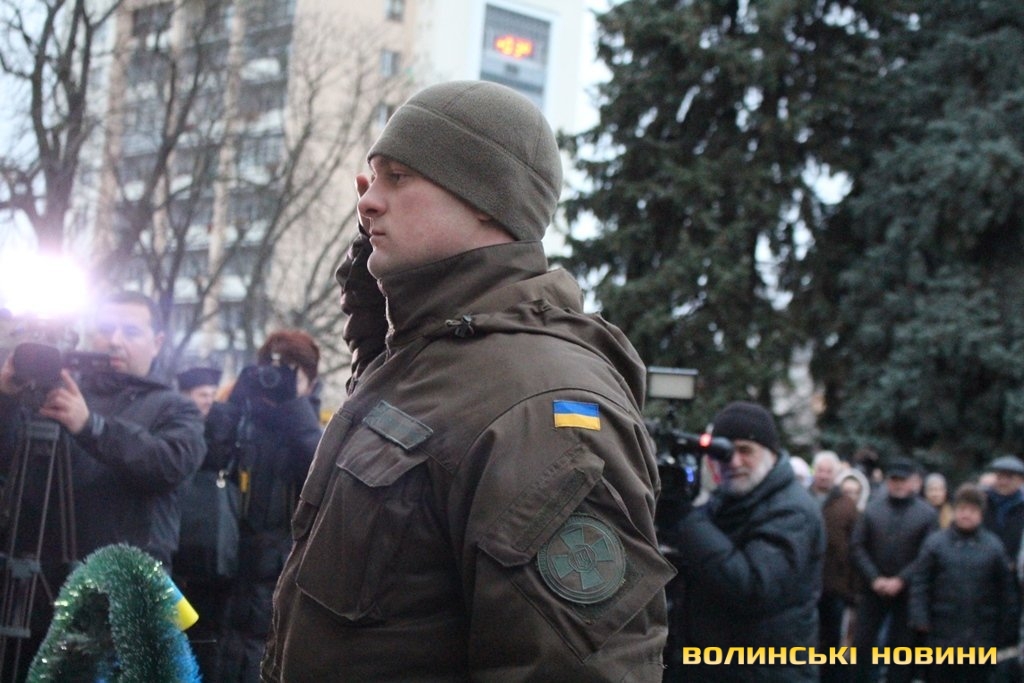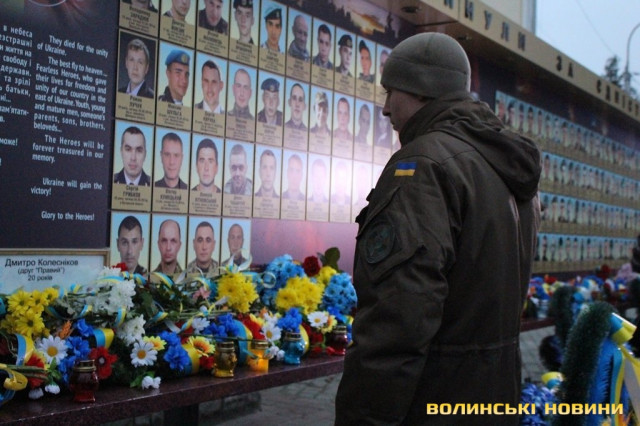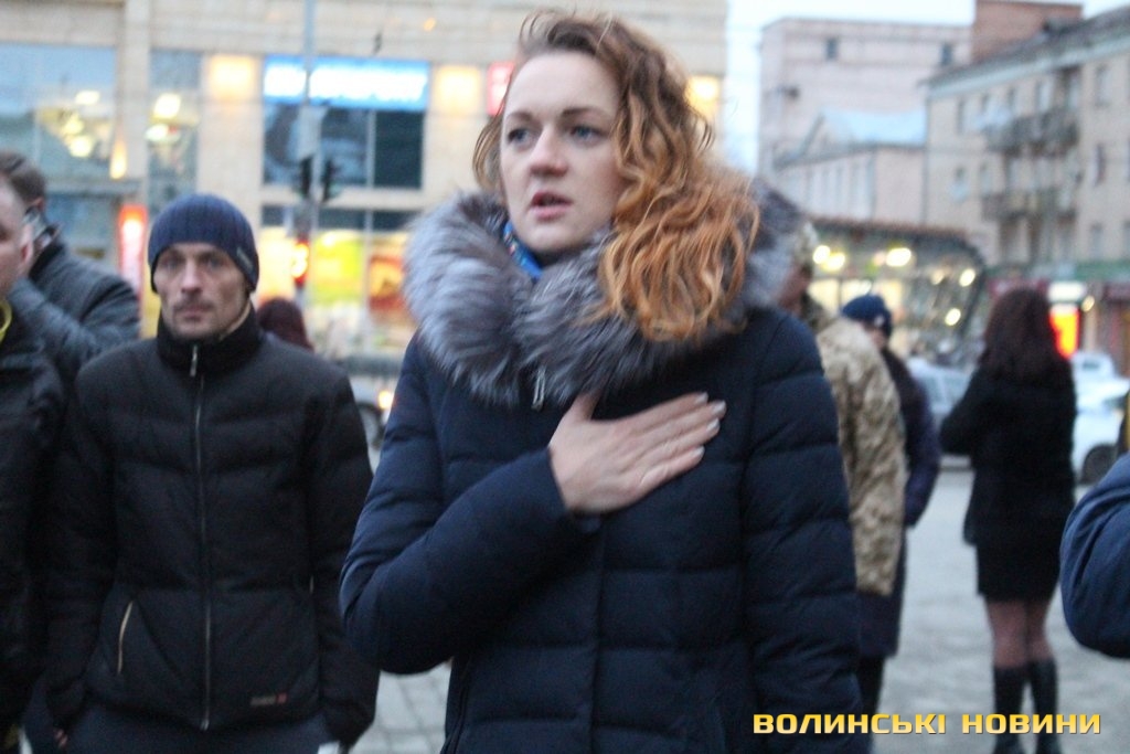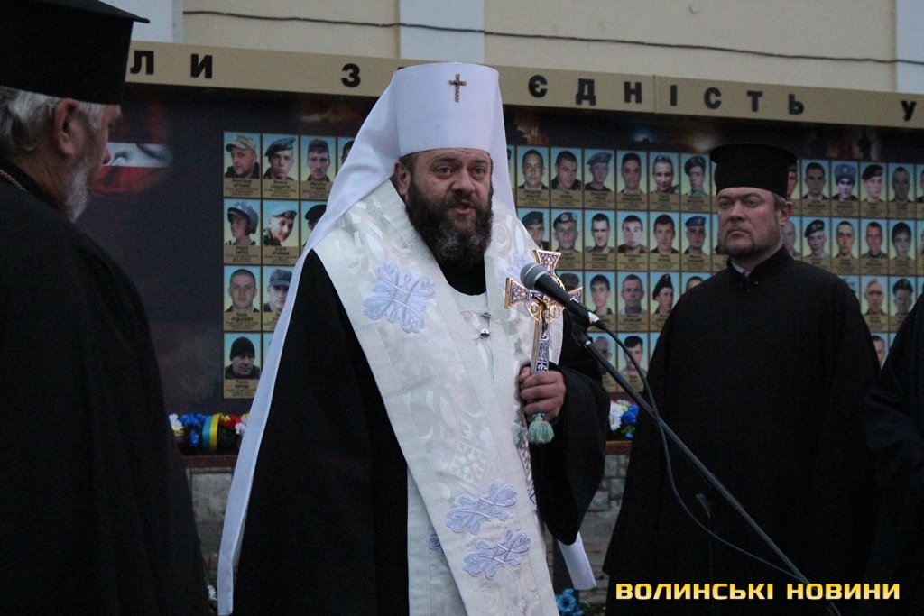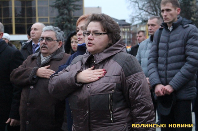 Так, 21 листопада лучани згуртувалися у центрі Луцька біля фотостенду «Героїв Небесної сотні та загиблих за єдність України», аби ще раз урочисто вшанувати Героїв, які поклали свої життя задля миру в Україні .На захід прийшли ветерани АТО, волонтери, родичі загиблих, представники влади, духовенства та просто небайдужі люди. Лучани зі сльозами на очах несли до стенду квіти та прапор України з Майдану.Митрополит Луцький та Волинський Михаїл помолився за усіх полеглих в боротьбі за свободу та незалежність України, освятив оновлену стелу пам’яті, та закликав усіх присутніх пам’ятати, що усі хто зображенний на стенді, віддали своє життя за правду.«Вони полягли, проклавши шлях до правди, і ми не маємо права її цуратися!» - сказав митрополит Михаїл.