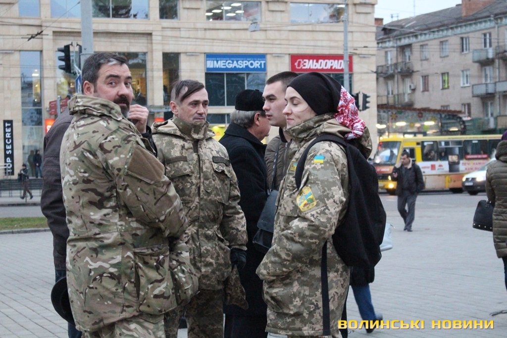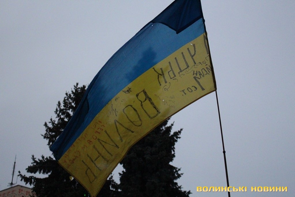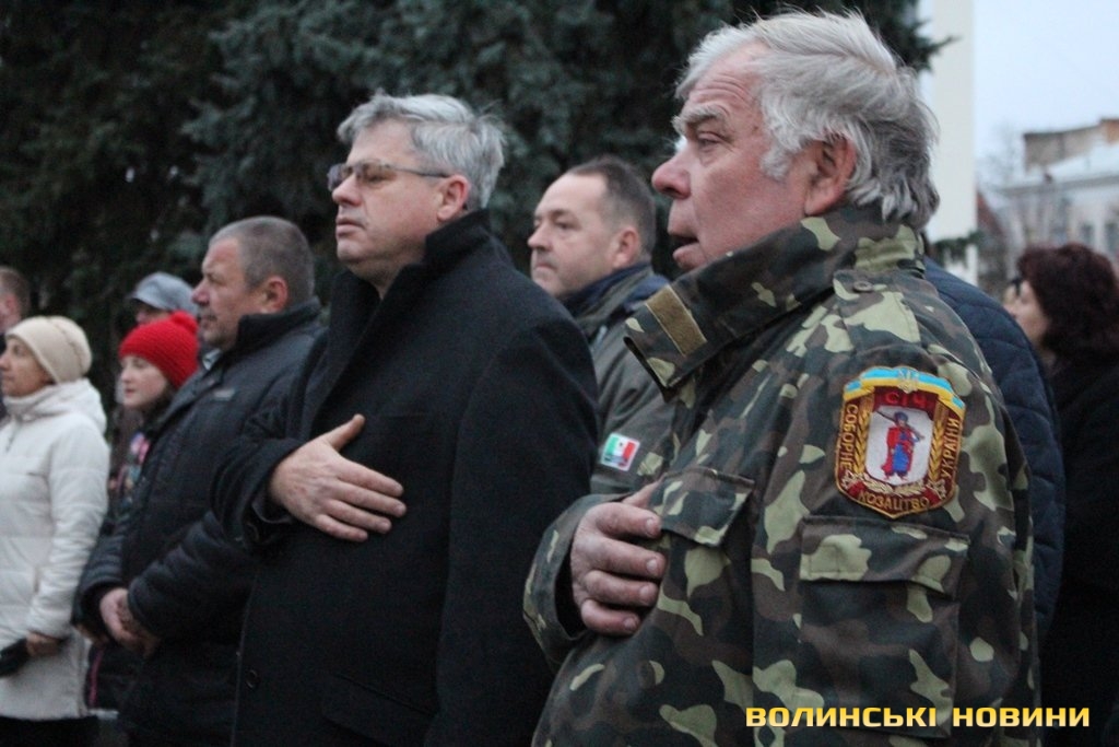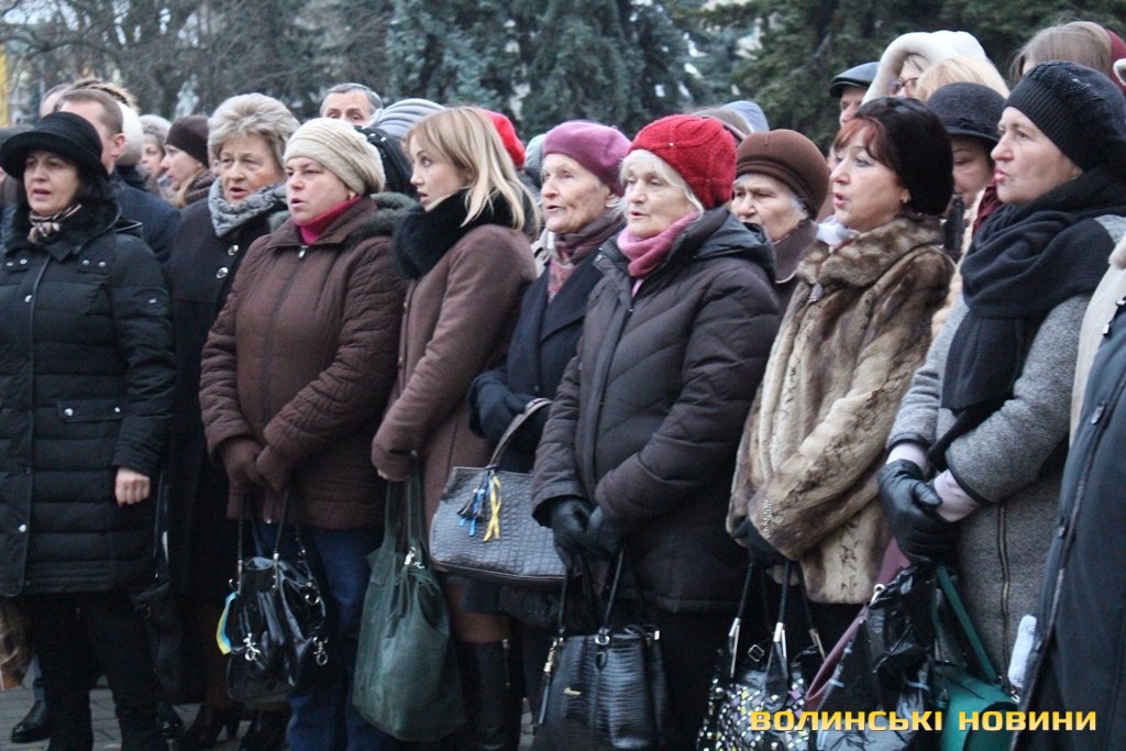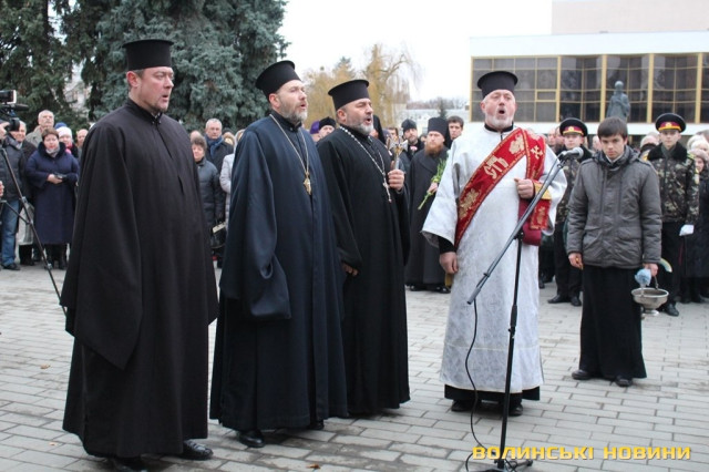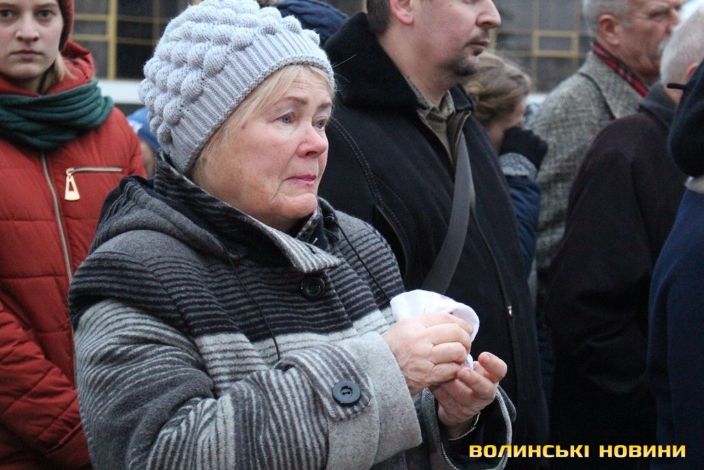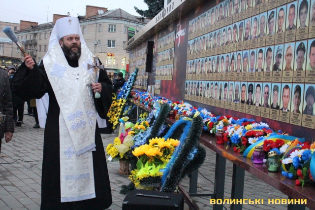 Кілька сотень людей зібралось на Театральному майдані Луцька у День Гідності та Свободи, аби помолитися за воїнів, полеглих у боях за незалежність України.