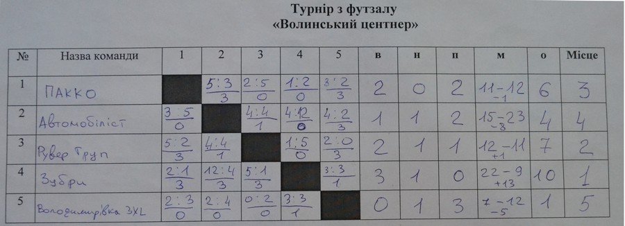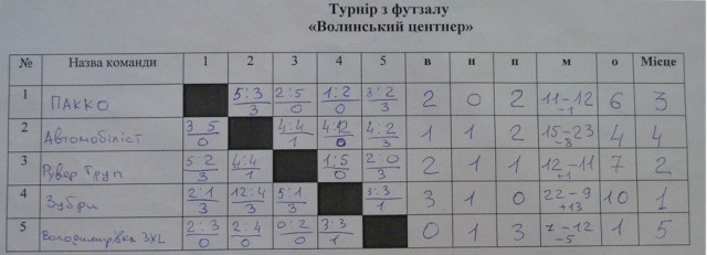 Згідно з результатами двох днів змагань жодна команда не завершила виступ без залікового балу. П’яту сходинку турнірної таблиці зайняла команда з Володимира-Волинського. Четвертою завершила виступ команда «Автомобіліст» (Ковель).