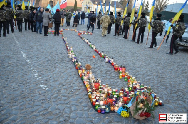 Згодом активісти виклали на бруківці великий хрест, на які усі поставили запалені лампадки.