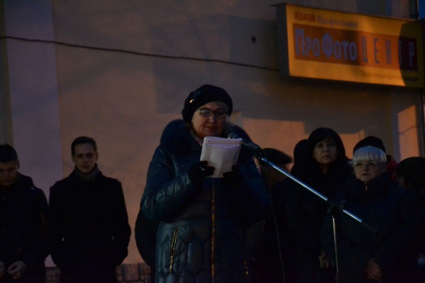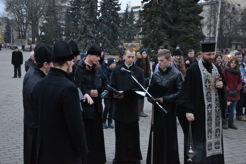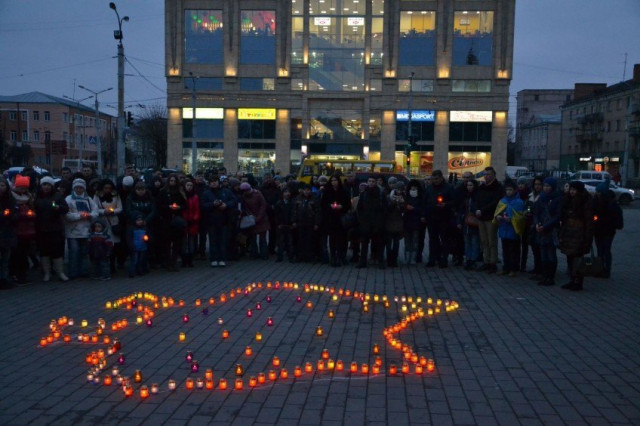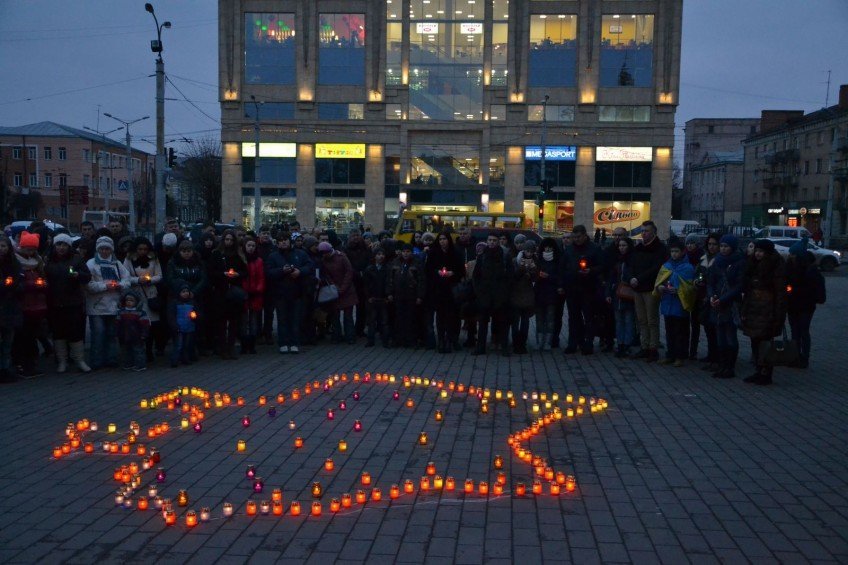 Біля стели героїв Небесної сотні священики відслужити панахиду, а громадські активісти співали пісні та читали тематичні вірші. Також лампадками виклали карту України із обласними центрами. На звершення в небо випустили сотню вогняних ліхтариків.
